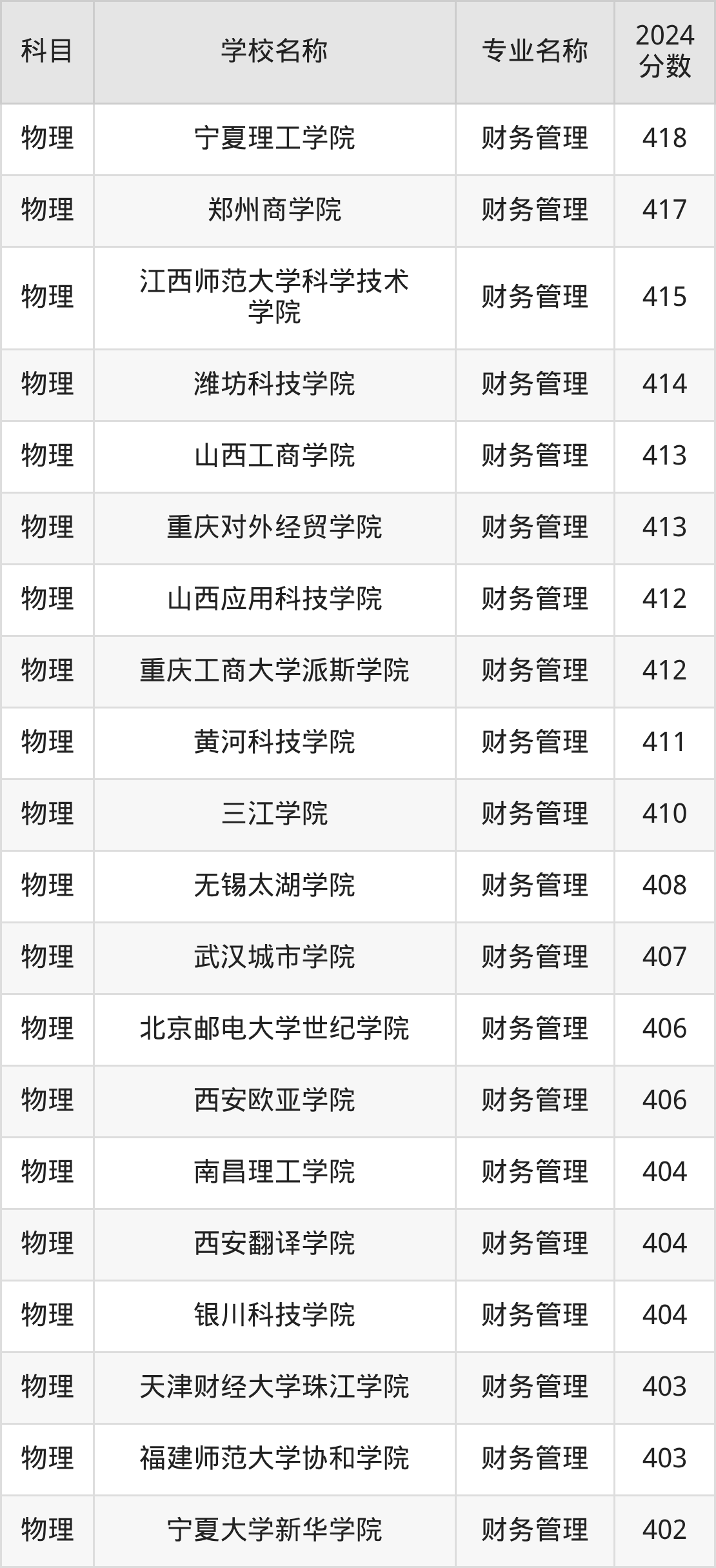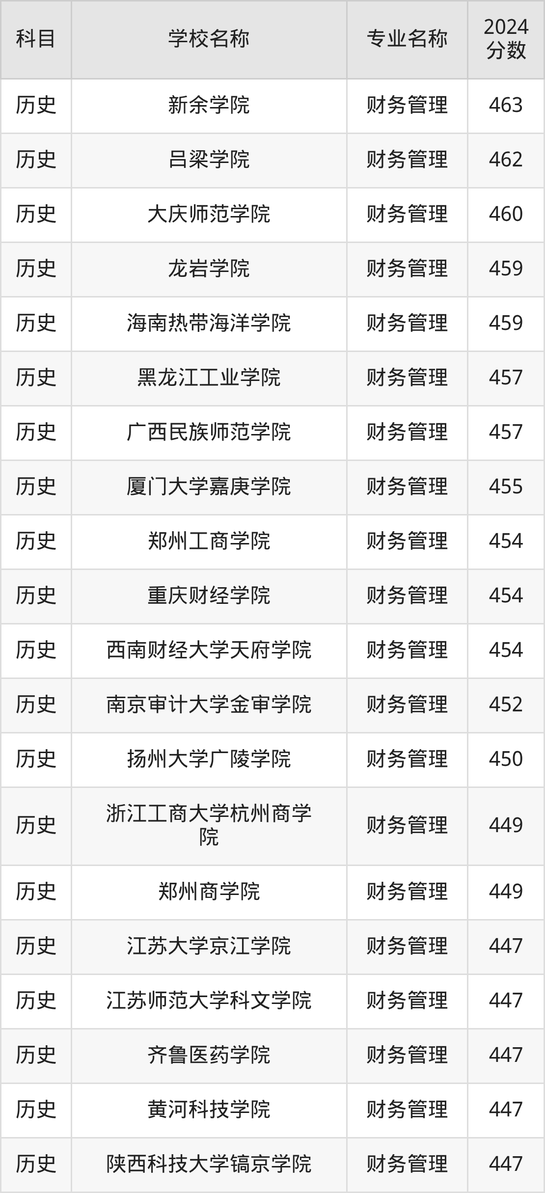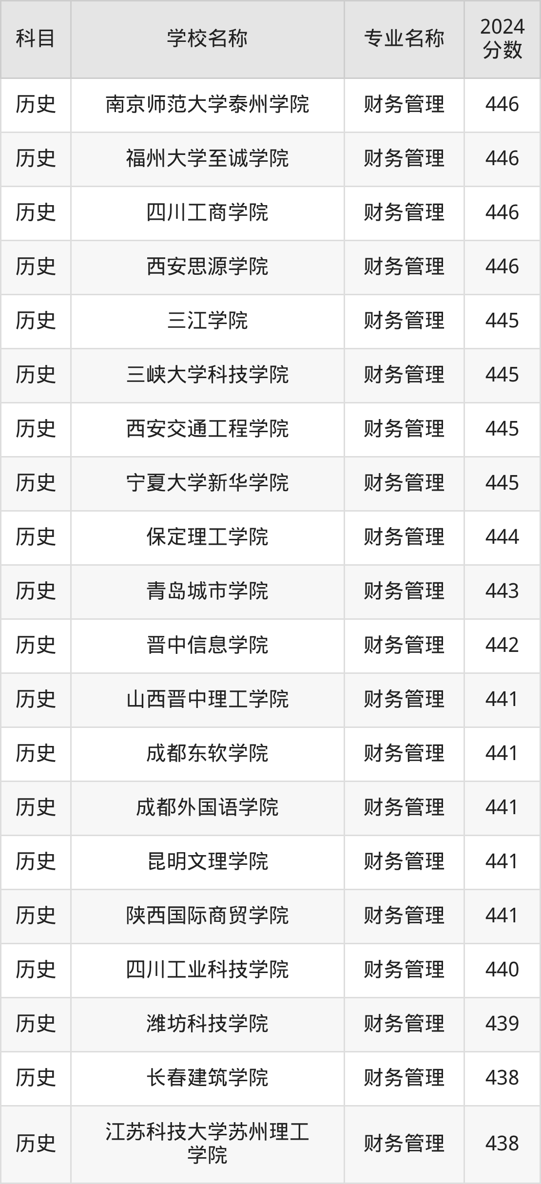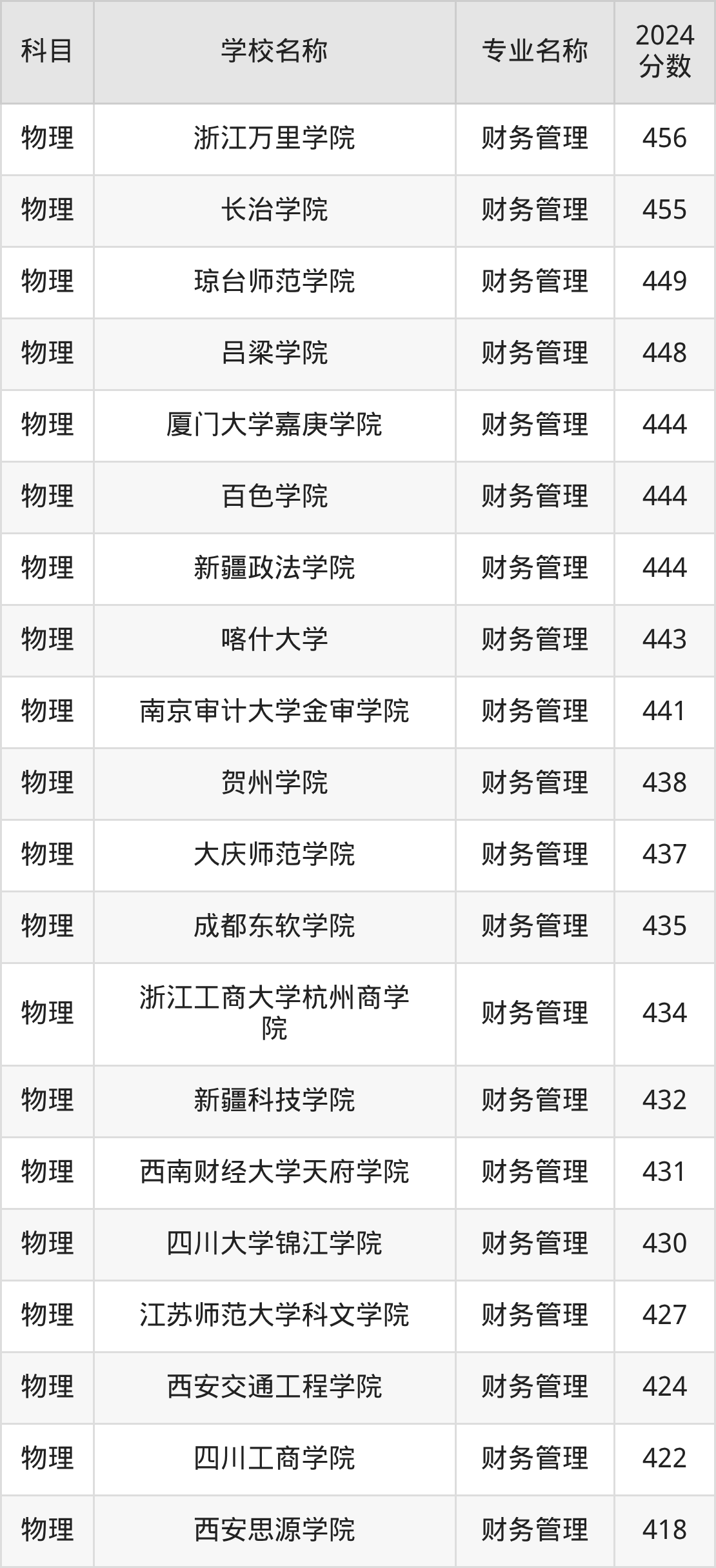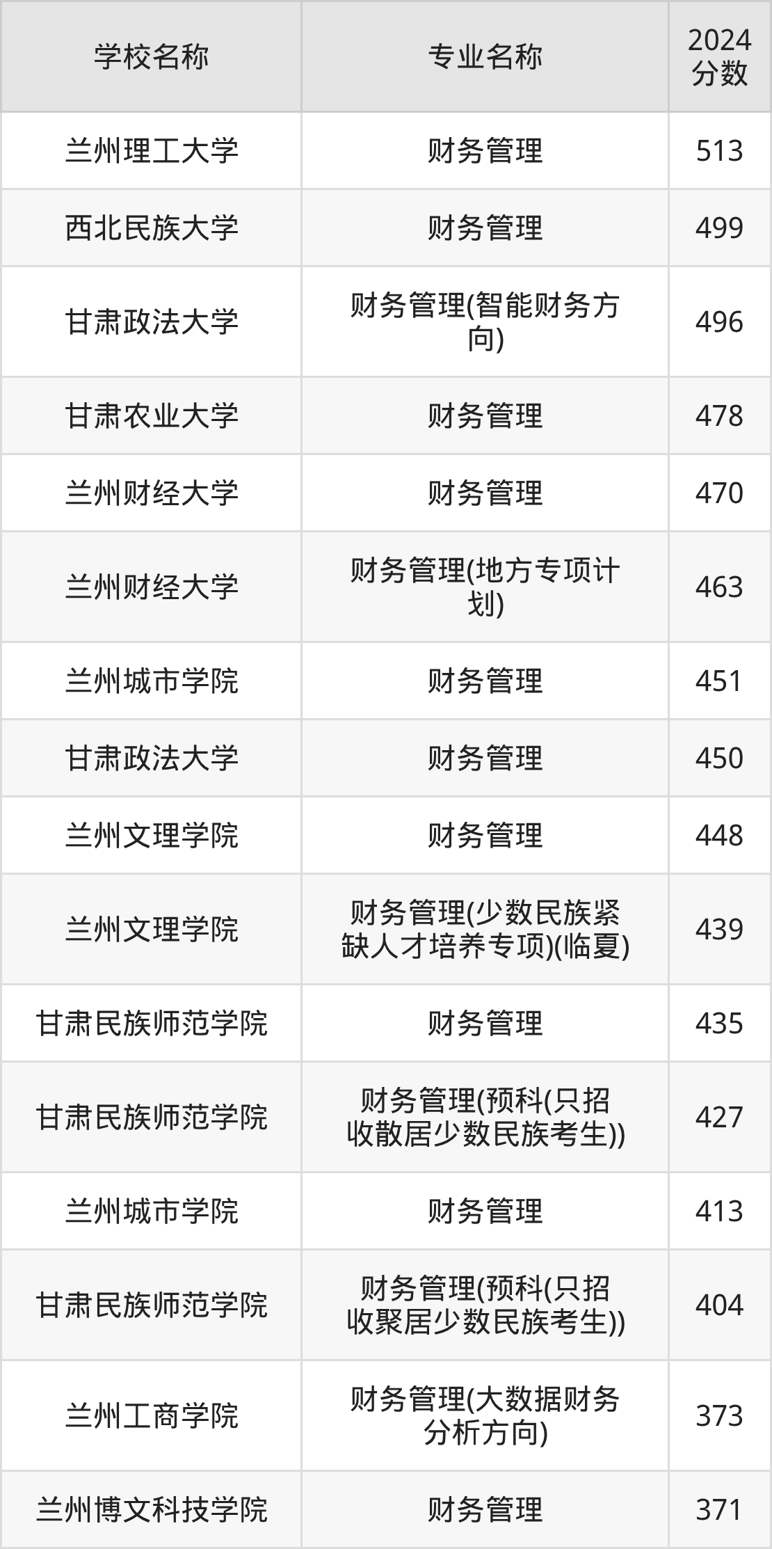 圆梦小编根据甘肃2024年高考历史组专业分,将开设了财务管理专业且位于甘肃省内的大学按照“录取分”从高到低排序,得出了以上榜单。