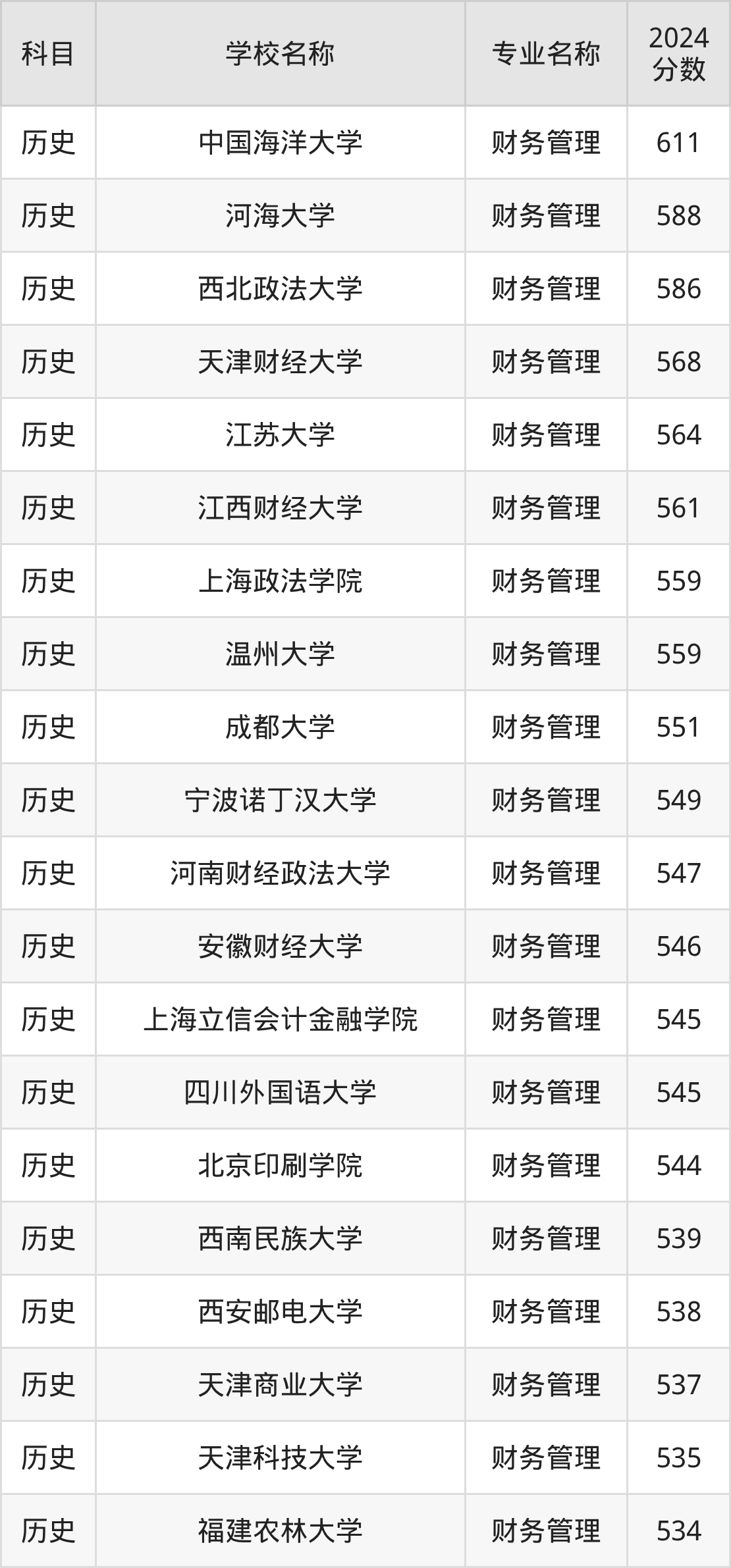 甘肃高考历史组:财务管理专业的最低分是409分~527分