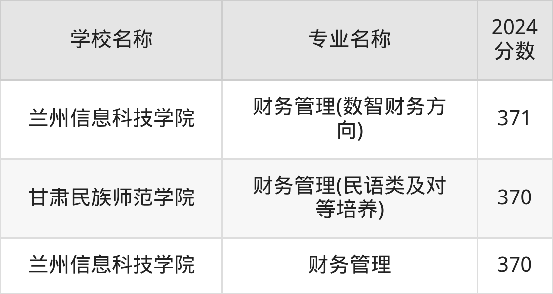 | 甘肃农业大学 | 财务管理(少数 民族紧缺人才培 养专项)(天祝) | 430 |
