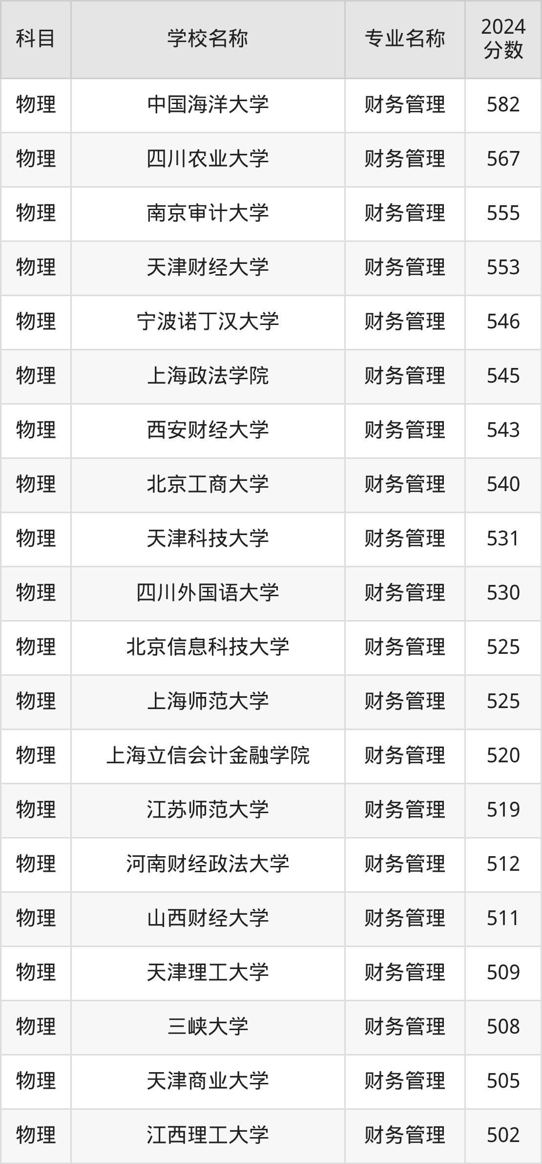通过上文大家可以知晓,在甘肃省内招财务管理专业的院校数量较少,所以下文将为2026届高考生继续展示:省外大学的财务管理专业2024年在甘肃高考的录取情况,包含中国海洋大学、河海大学、西北政法大学、天津财经大学、江苏大学。