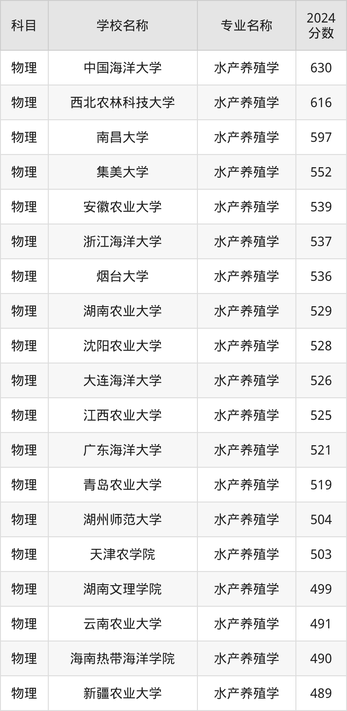 江苏高考物理组:水产养殖学专业的最低分是493分~546分