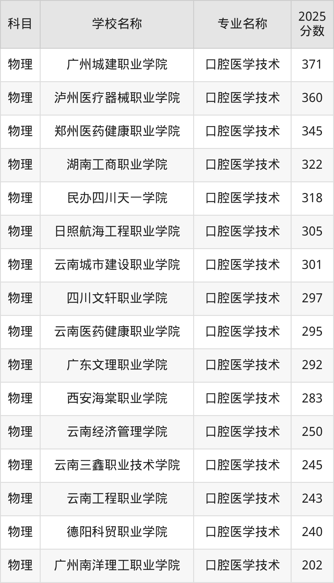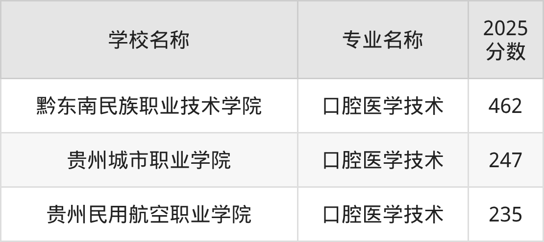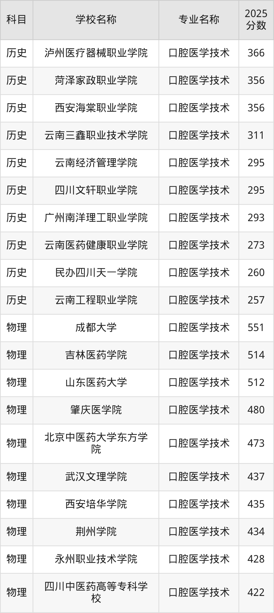 下文将为大家展示贵州省大学口腔医学技术专业2025年在贵州高考的最低录取分数线!