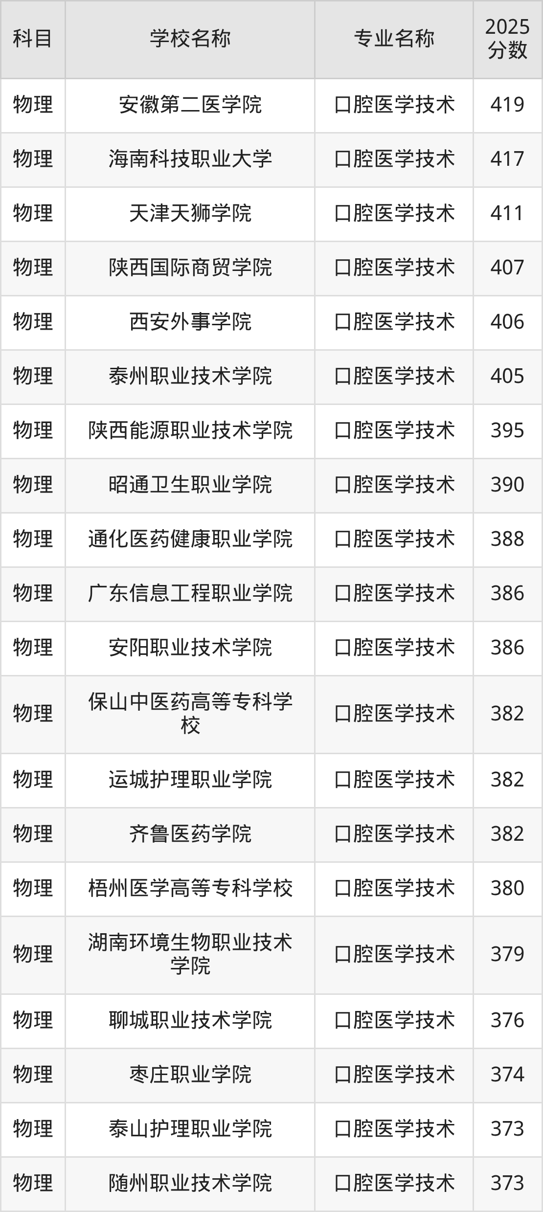 | 黔东南民族职业技术学 院 | 口腔医学技术 | 390 |