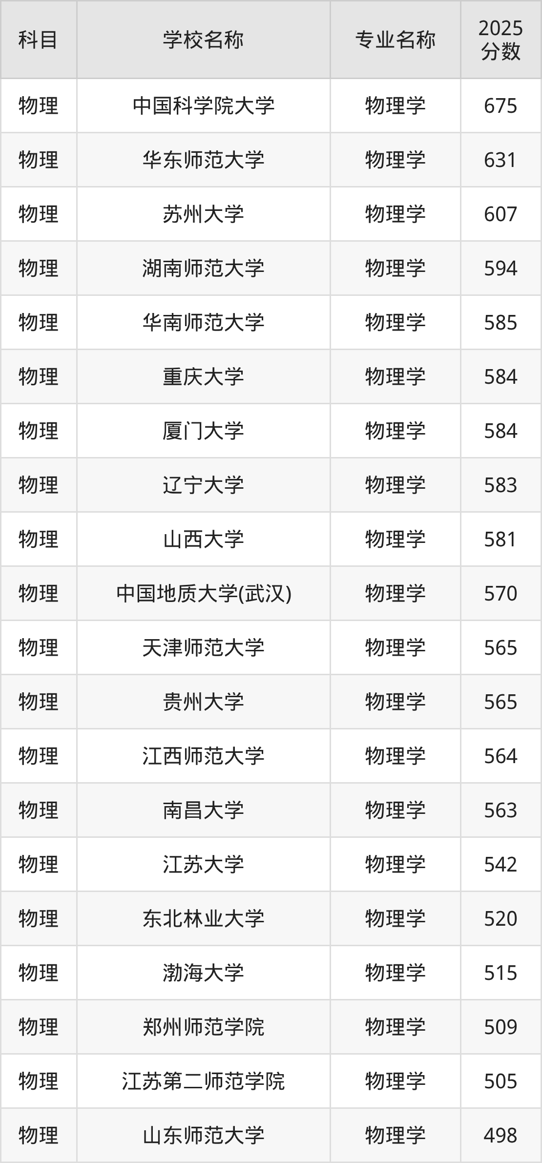 | 长春师范大学 | 物理学(师范类) | 481 |