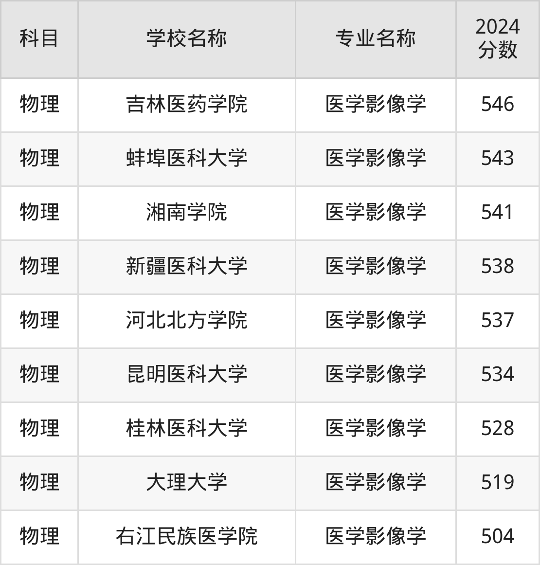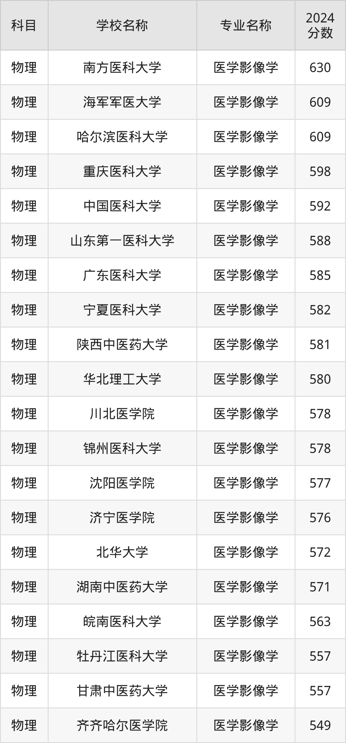 通过上文大家可以知晓,在江苏省内招医学影像学专业的院校数量较少,所以下文将为2026届高考生继续展示:省外大学的医学影像学专业2024年在江苏高考的录取情况,包含南方医科大学、海军军医大学、哈尔滨医科大学、重庆医科大学、中国医科大学。