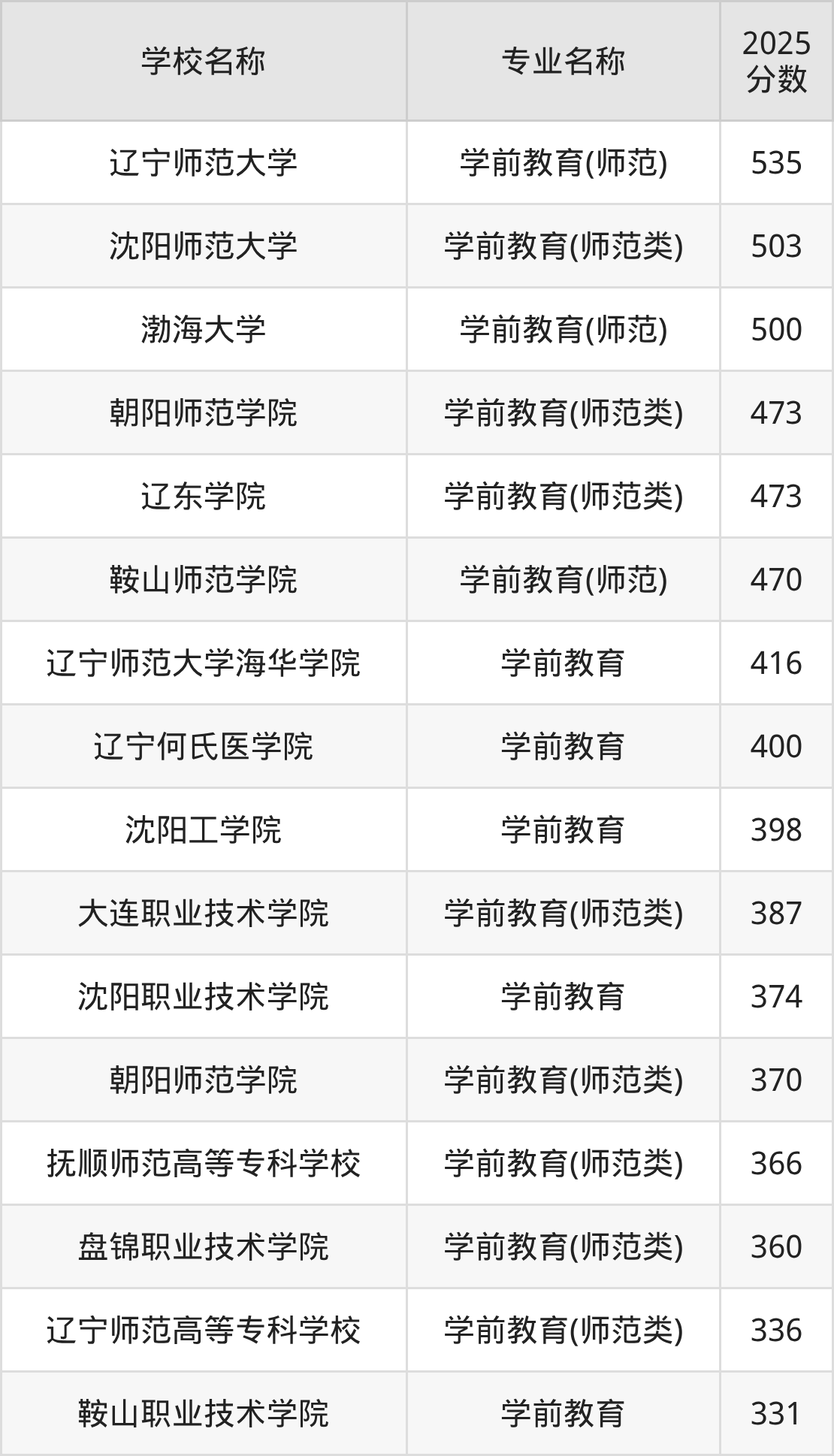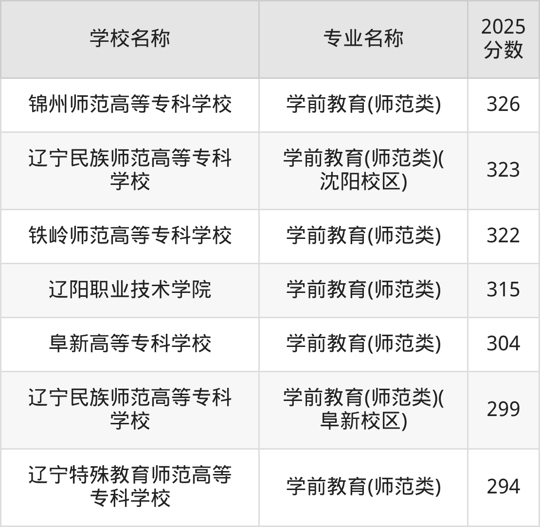 | 辽宁民族师范高等专科 学校 | 学前教育(师范 类)(沈阳校区) | 365 |