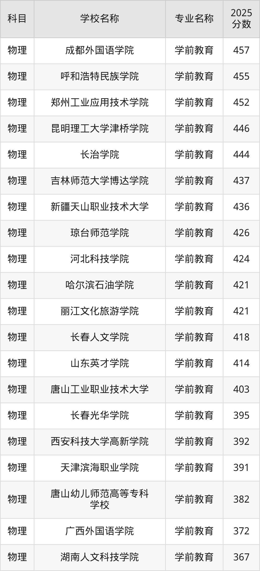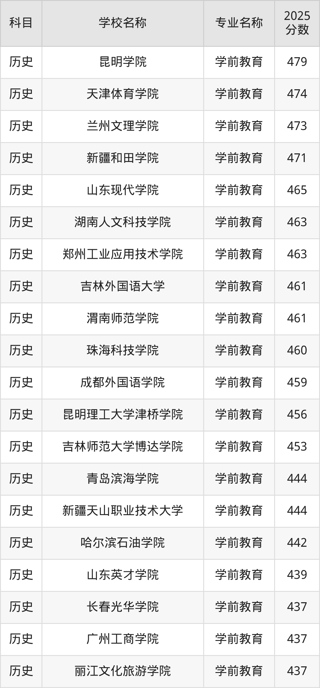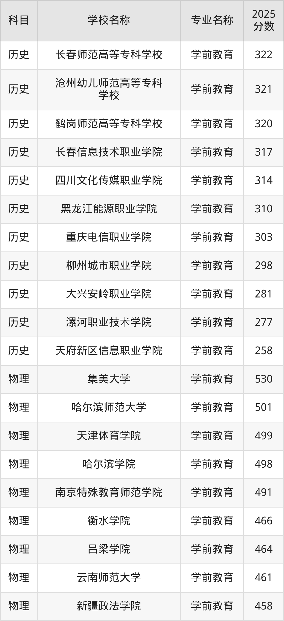 | 学校名称 | 专业名称 | 2025 分数 |