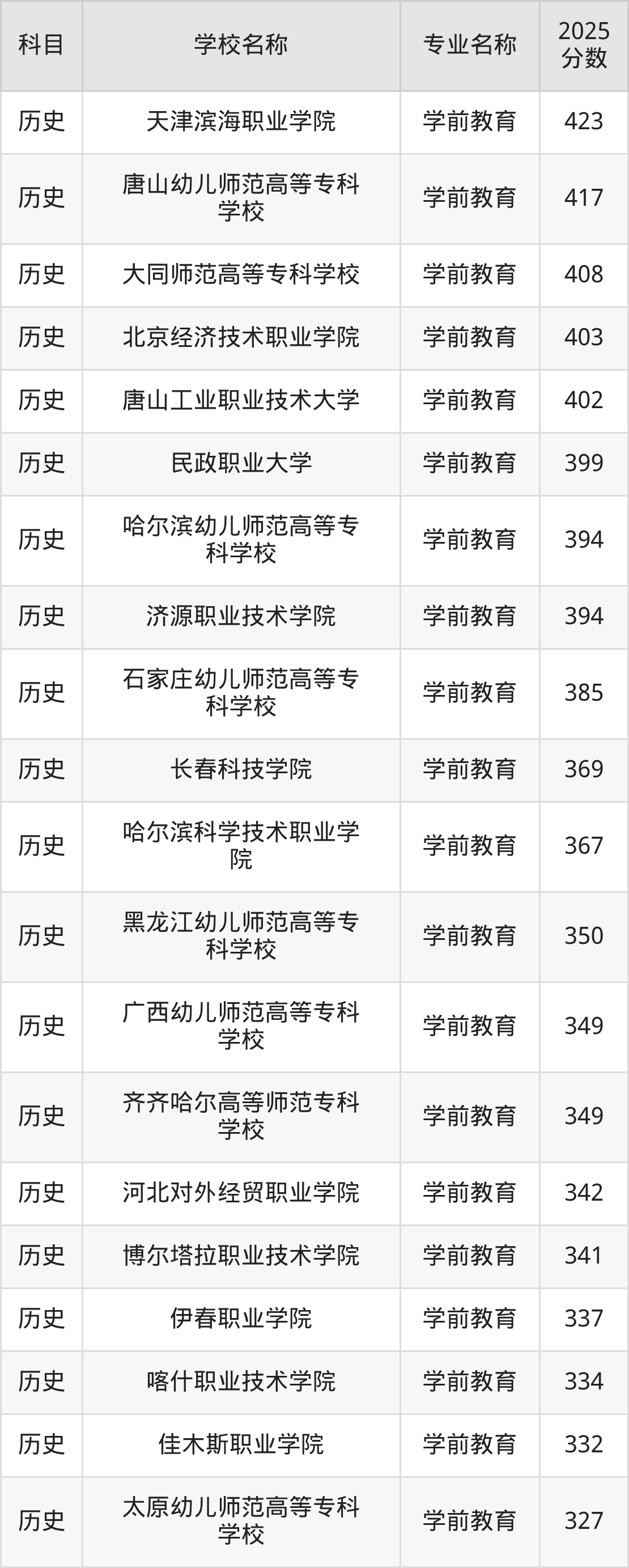 | 渤海船舶职业学院 | 学前教育(师范 类) | 359 |