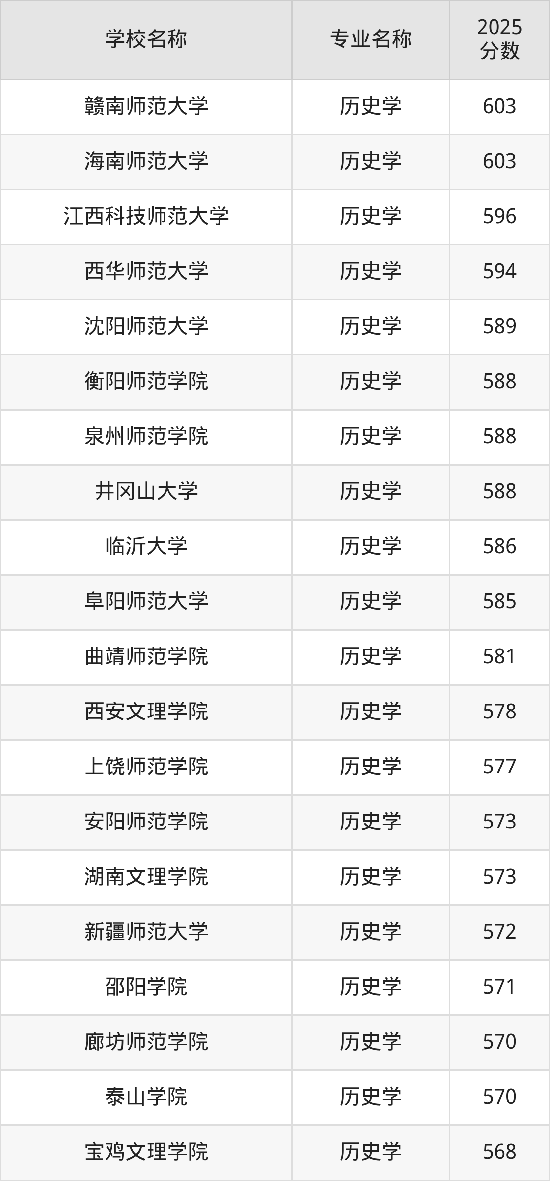 | 湖州师范大学 | 历史学(师范) | 589 |