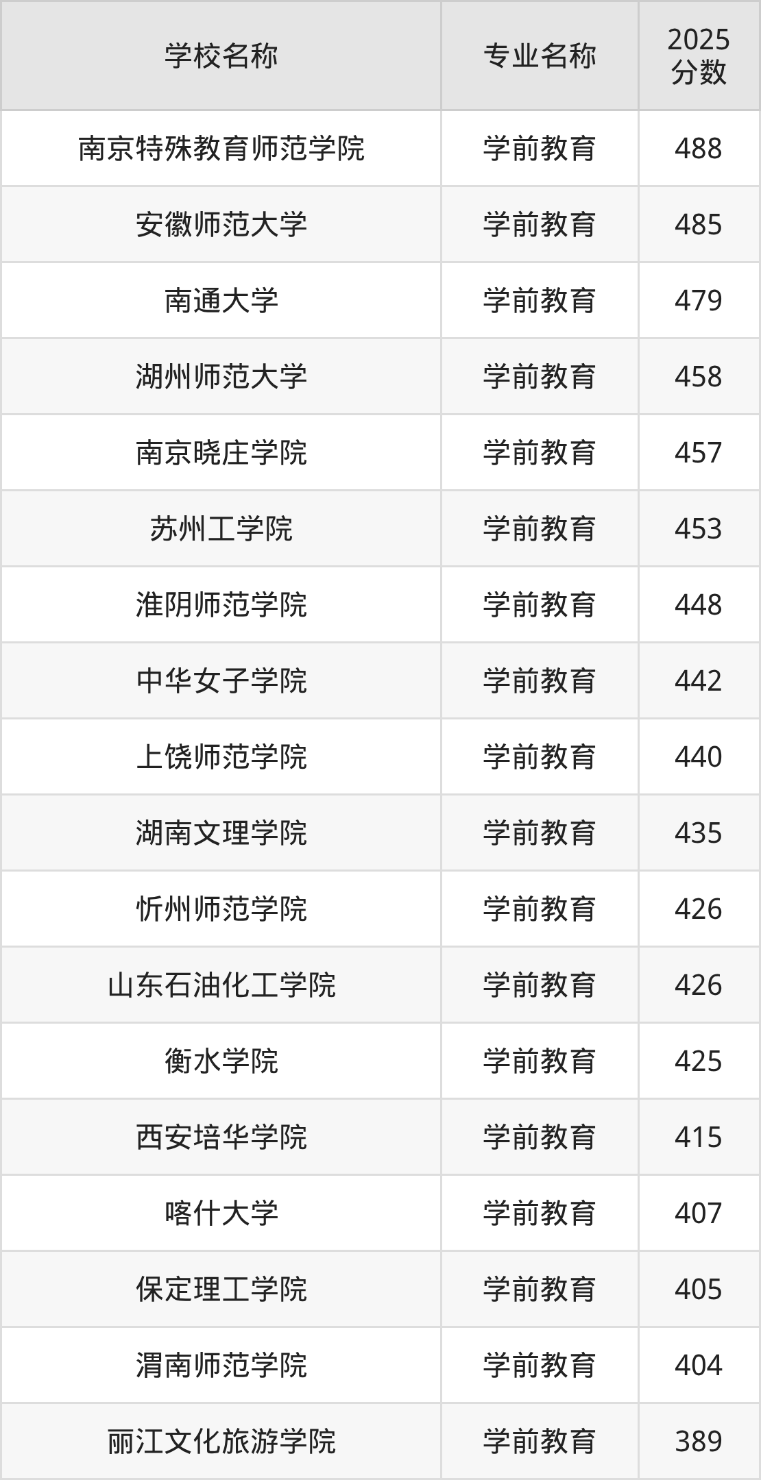 | 上海杉达学院 | 学前教育 | 440 |