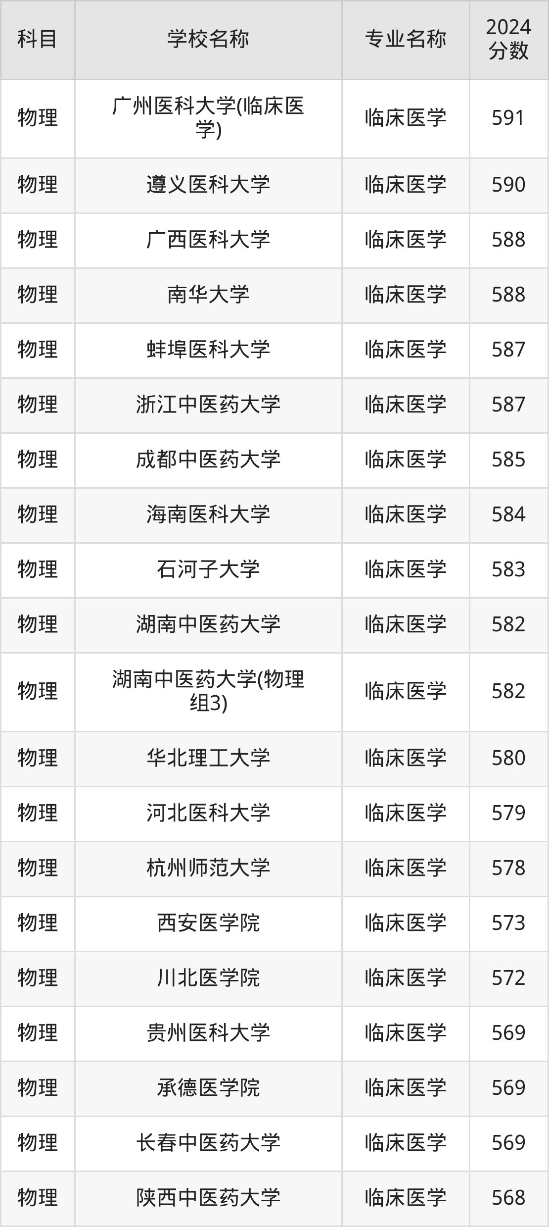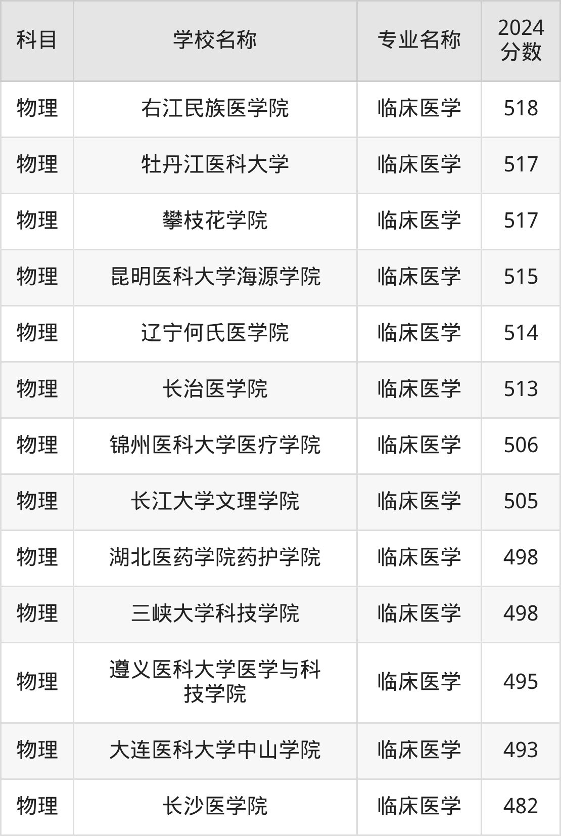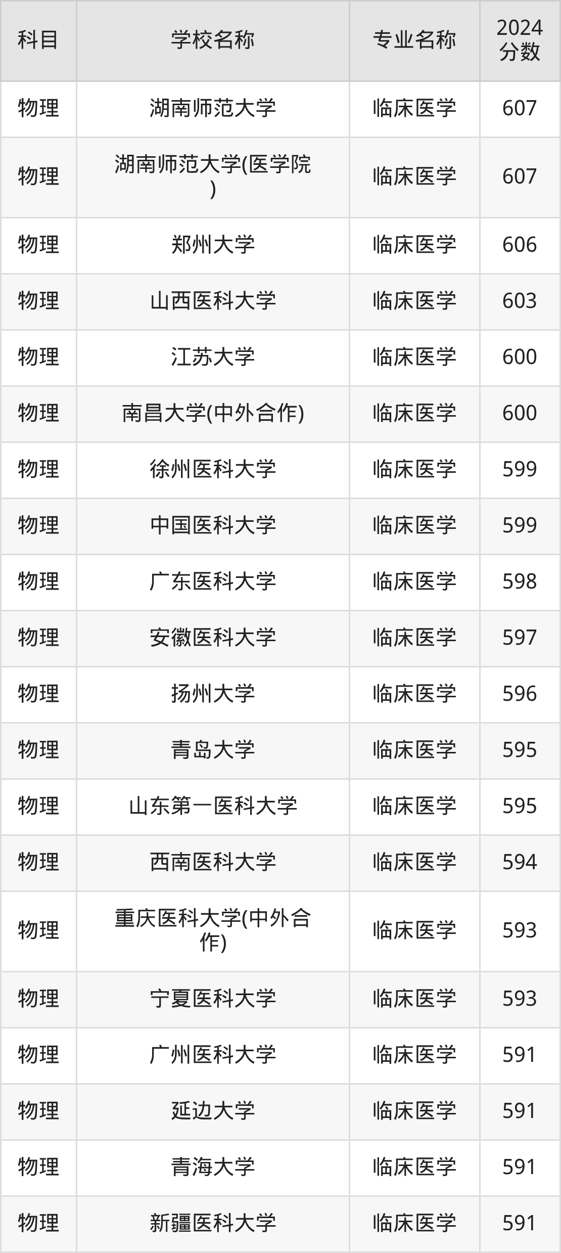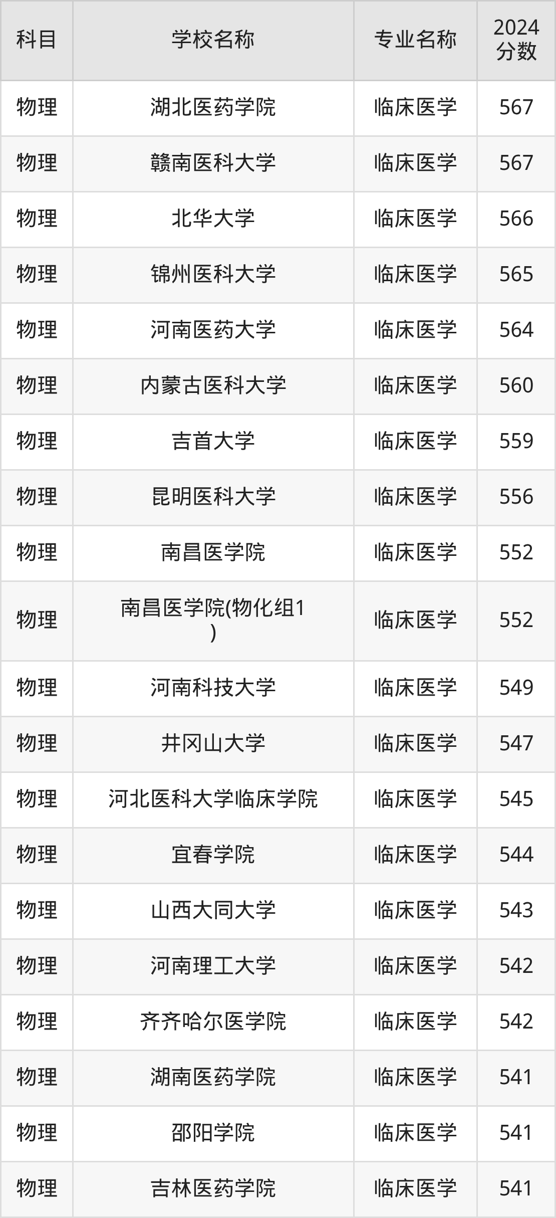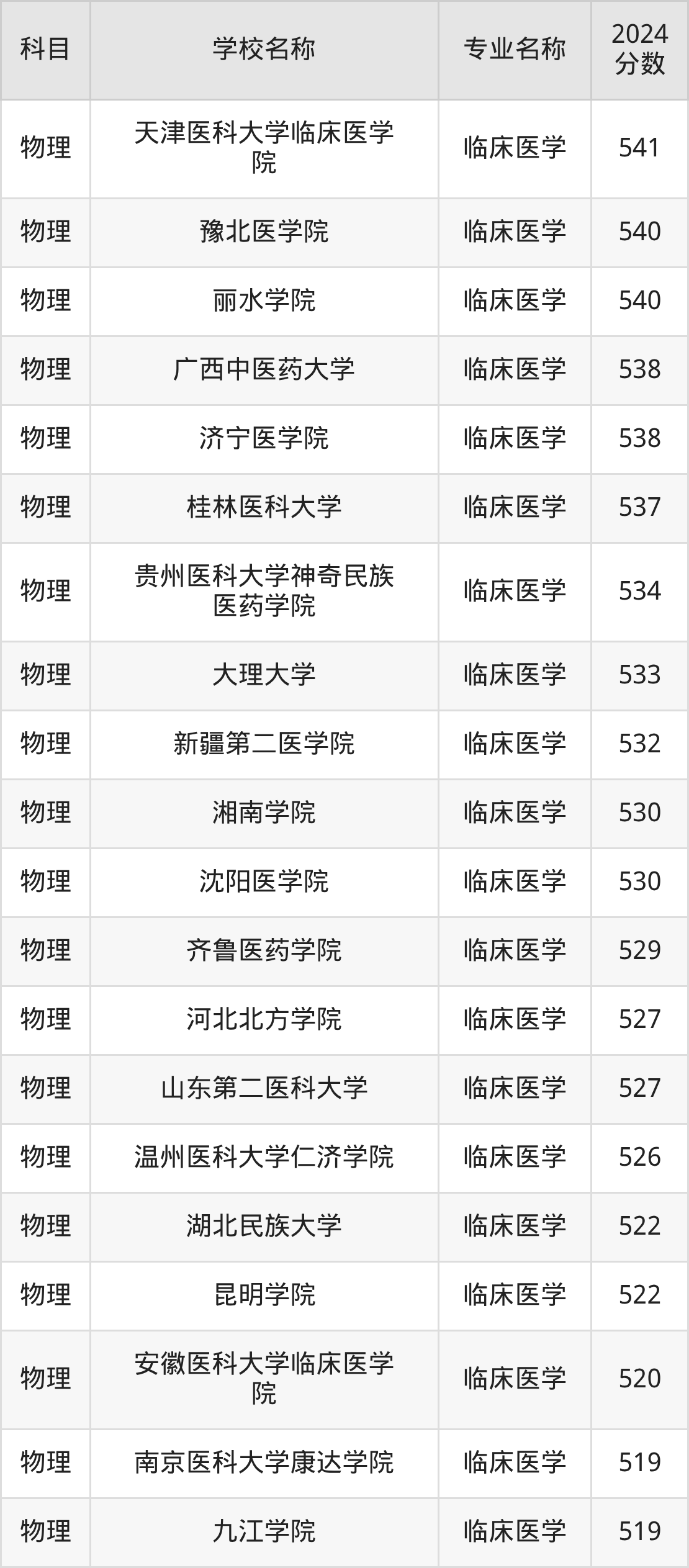 | 莆田学院(医学类) | 临床医学 | 548 |