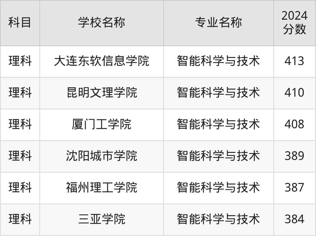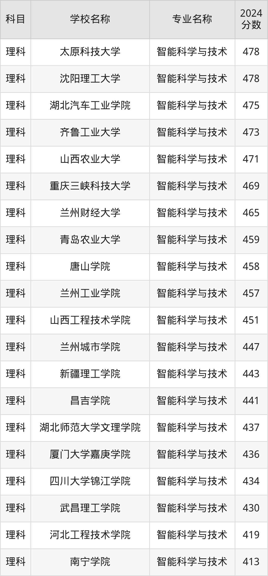 | 西安科技大学高新学院 | 智能科学与技术 | 418 |