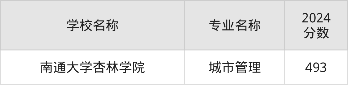 | 南通大学杏林学院 | 城市管理 | 486 |
