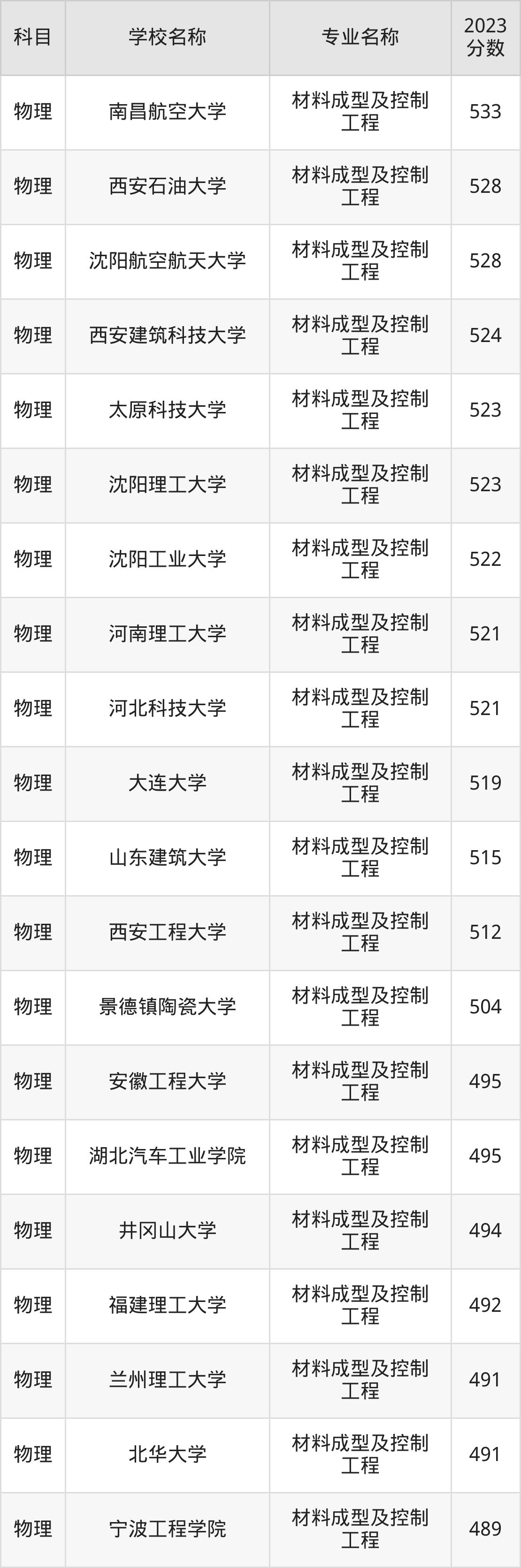 在直接以“材料成型及控制工程”的名称招生的湖南省大学中,湘潭大学的分数线最高、排名第一名,在物理组的最低分是568分,全省排名前30454位的高考生才有较大机会被录取。