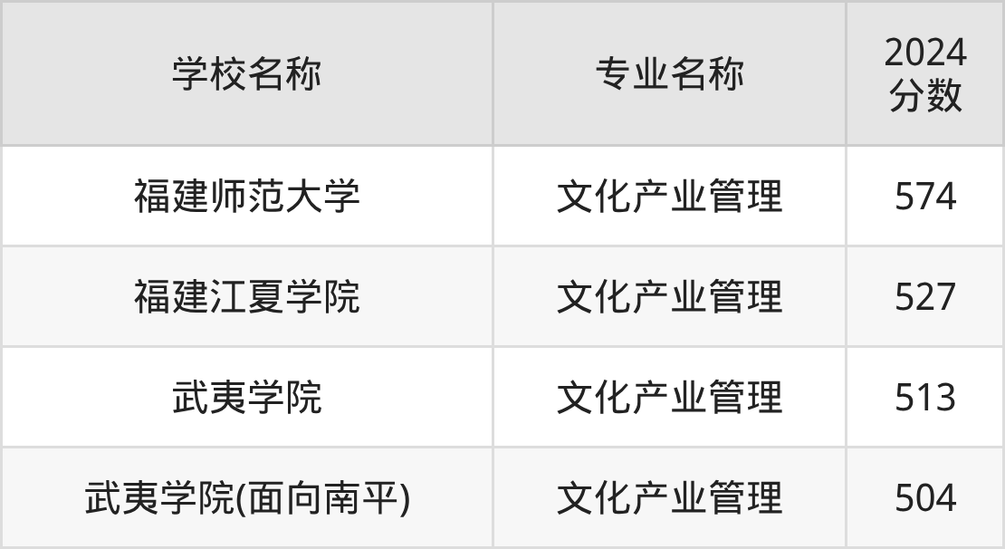 | 武夷学院(面向南平) | 文化产业管理 | 476 |