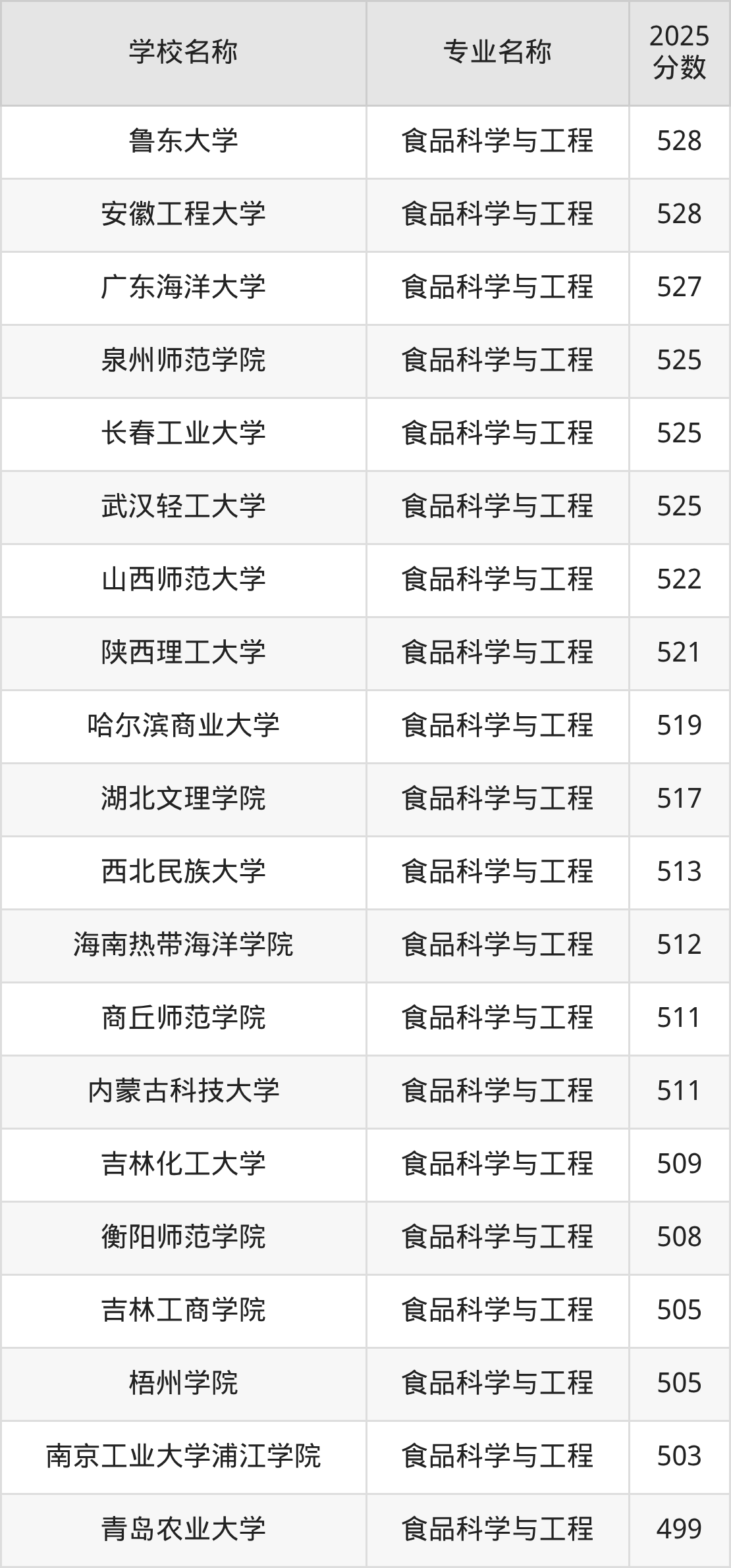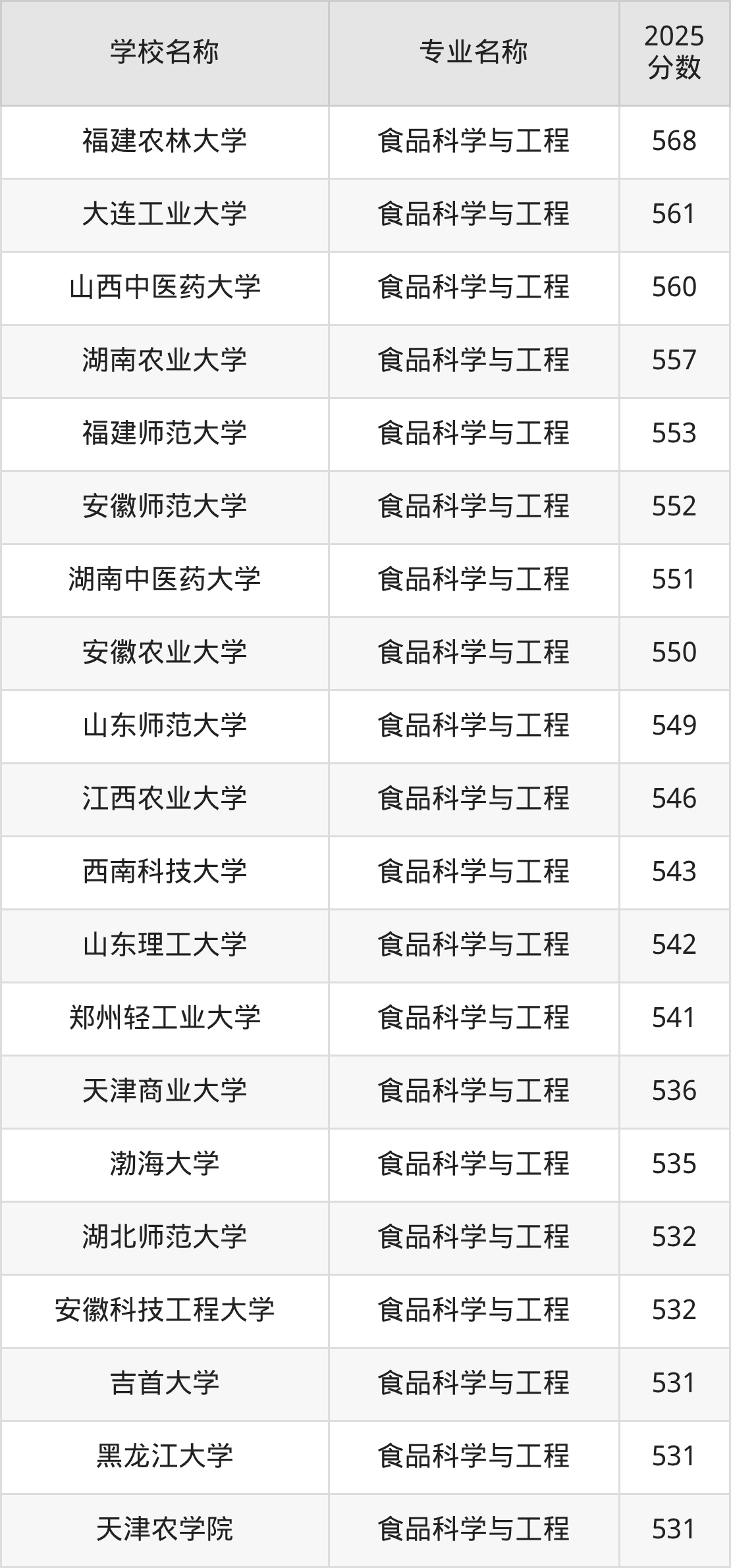 下文将为大家展示浙江省大学食品科学与工程专业2025年在浙江高考的最低录取分数线!