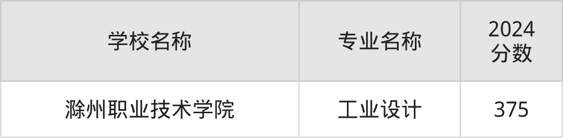 | 滁州职业技术学院 | 工业设计 | 387 |