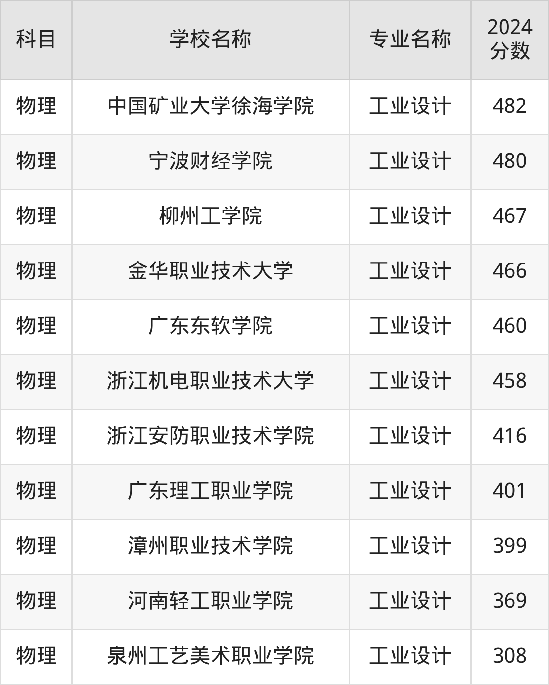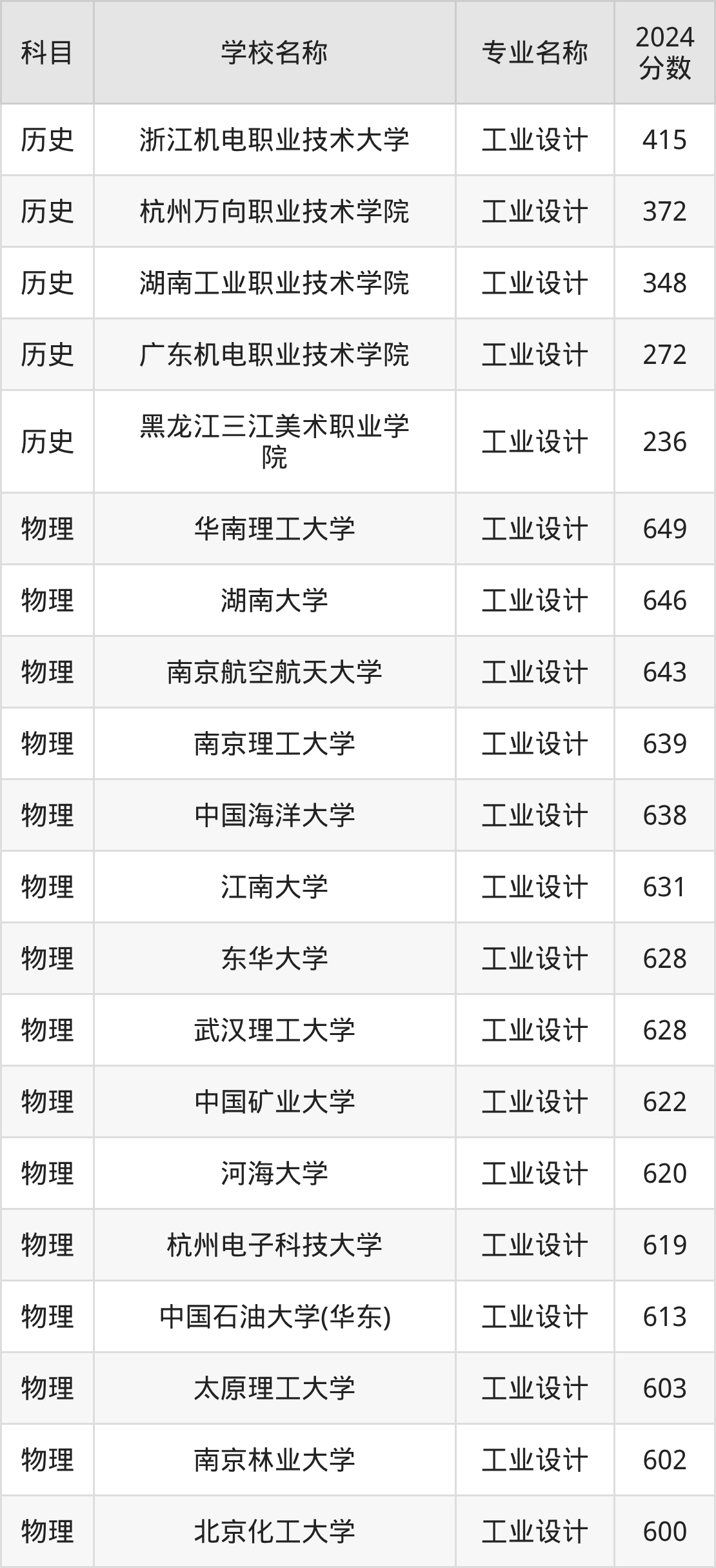通过上文大家可以知晓,在安徽省内招工业设计专业的院校数量较少,所以下文将为2026届高考生继续展示:省外大学的工业设计专业2024年在安徽高考的录取情况,包含浙江机电职业技术大学、杭州万向职业技术学院、湖南工业职业技术学院、广东机电职业技术学院、黑龙江三江美术职业学院。