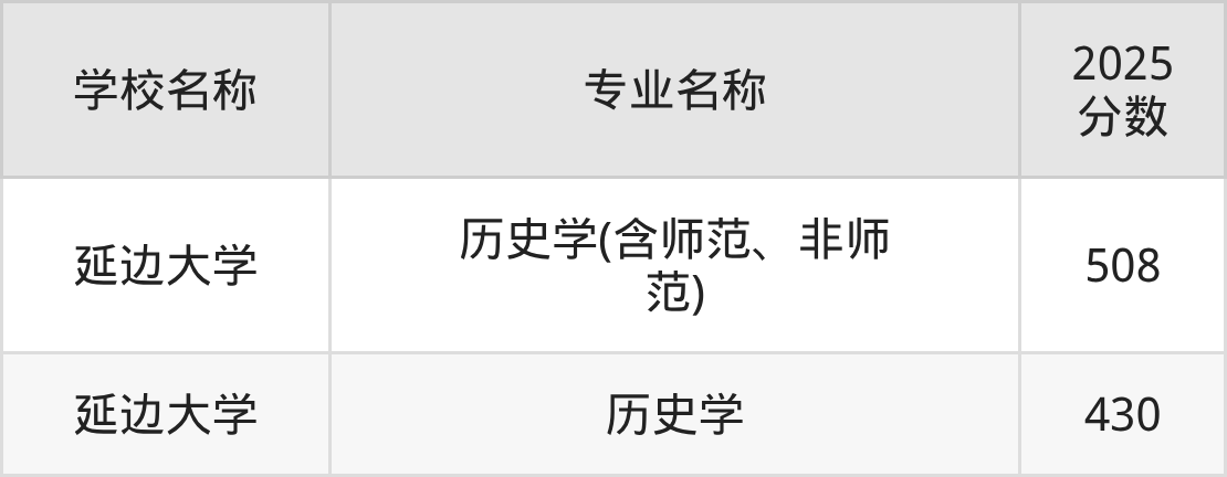 | 延边大学 | 历史学(含师范 、非师范) | 542 |