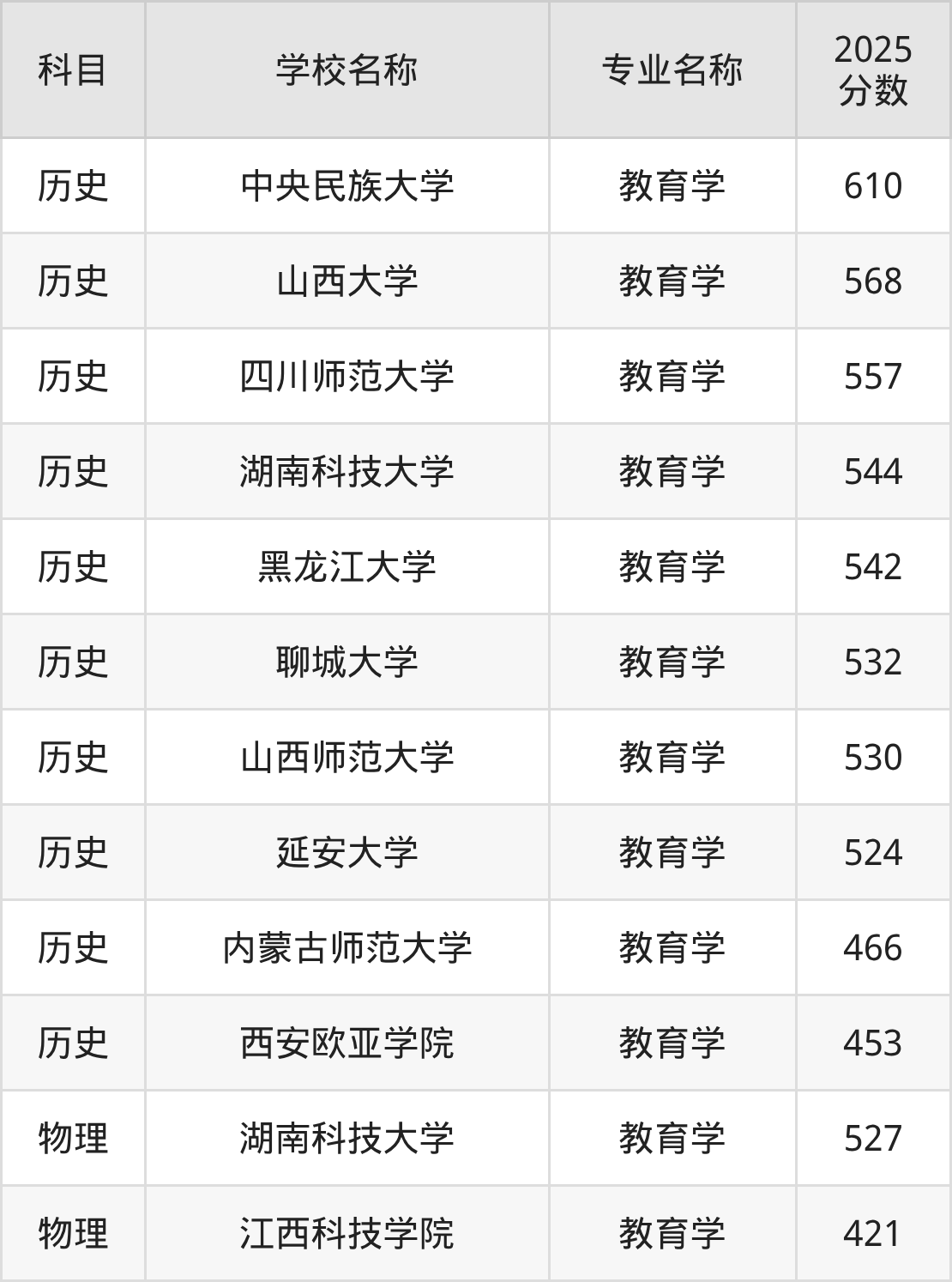 | 学校名称 | 专业名称 | 2025 分数 |