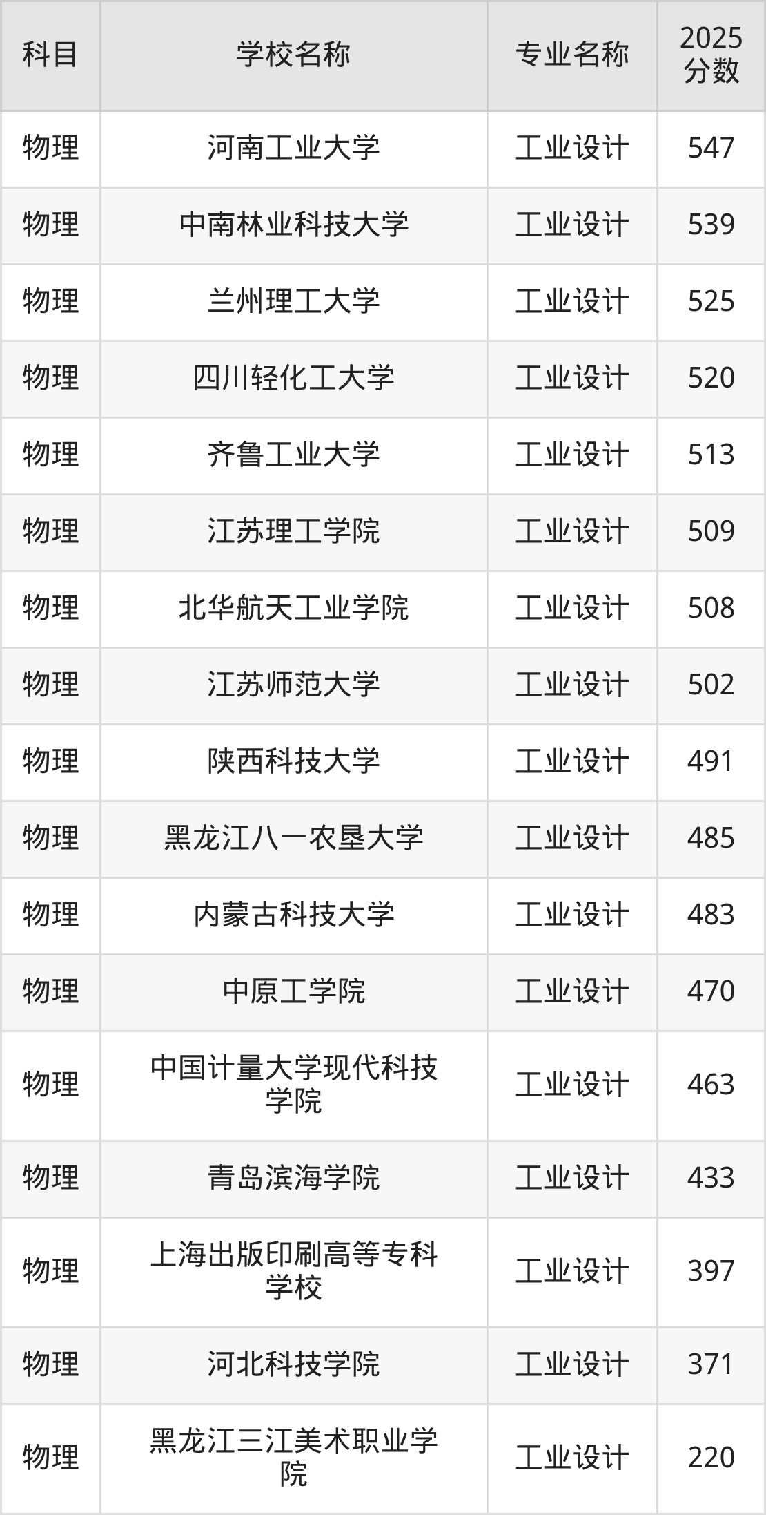 下文将为大家展示辽宁省大学工业设计专业2025年在辽宁高考的最低录取分数线!