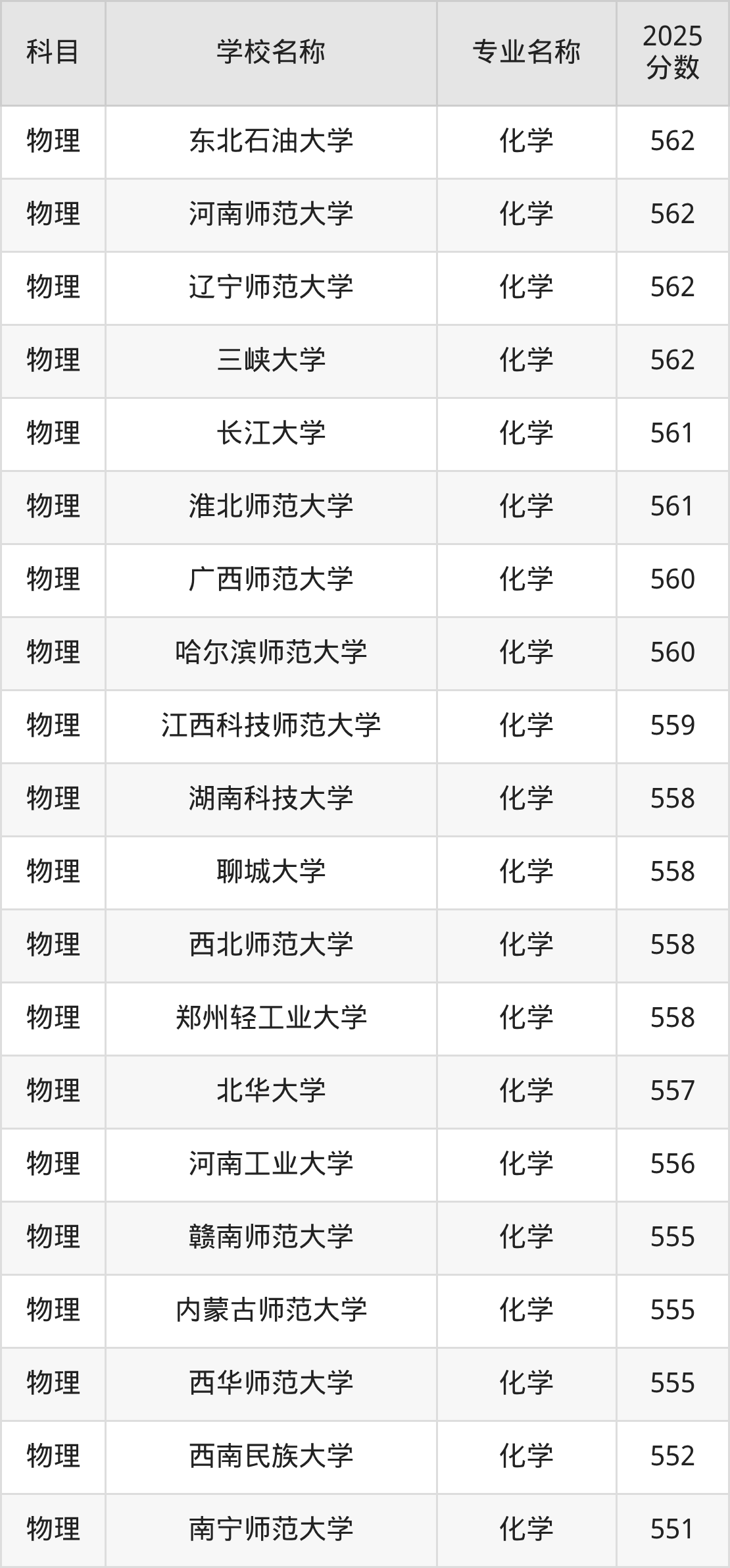 | 河北大学(地方专项计 划) | 化学(地方专项) | 557 |
