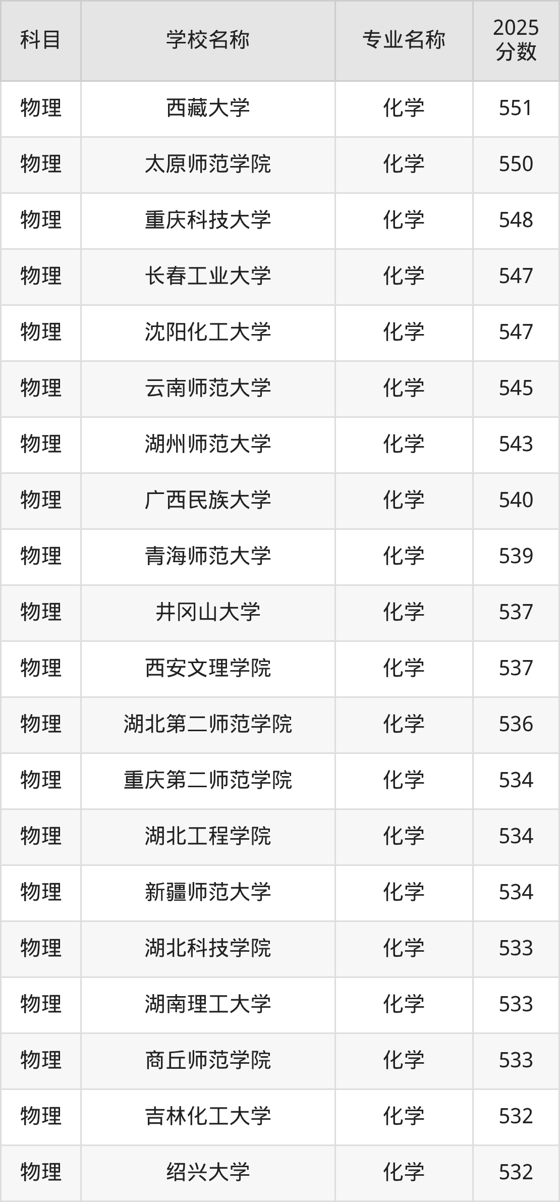 下文将为大家展示河北省大学化学专业2025年在河北高考的最低录取分数线!