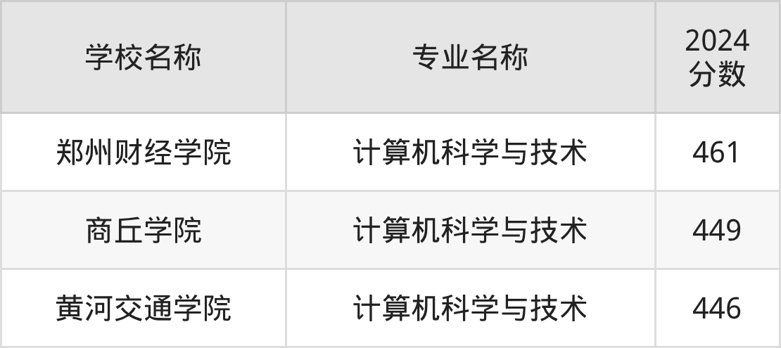 | 郑州工业应用技术学院 | 计算机科学与技 术(软件服务外 包方向) | 440 |