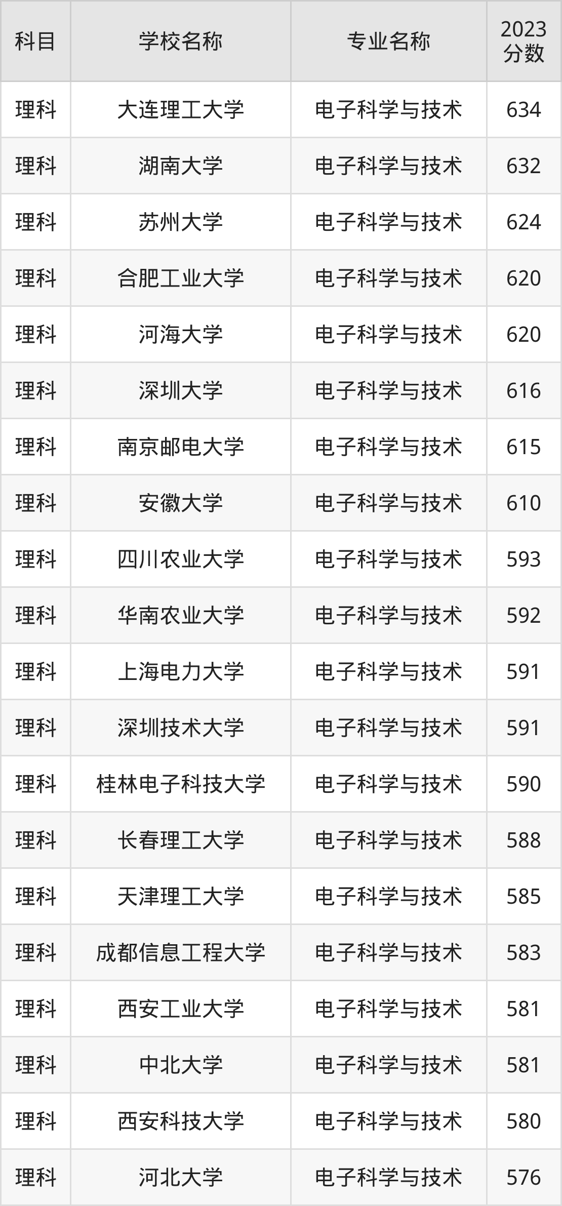 通过上文大家可以知晓,在河南省内招电子科学与技术专业的院校数量较少,所以下文将为2025届高考生继续展示:省外大学的电子科学与技术专业2023年在河南高考的录取情况,包含大连理工大学、湖南大学、苏州大学、合肥工业大学、河海大学。