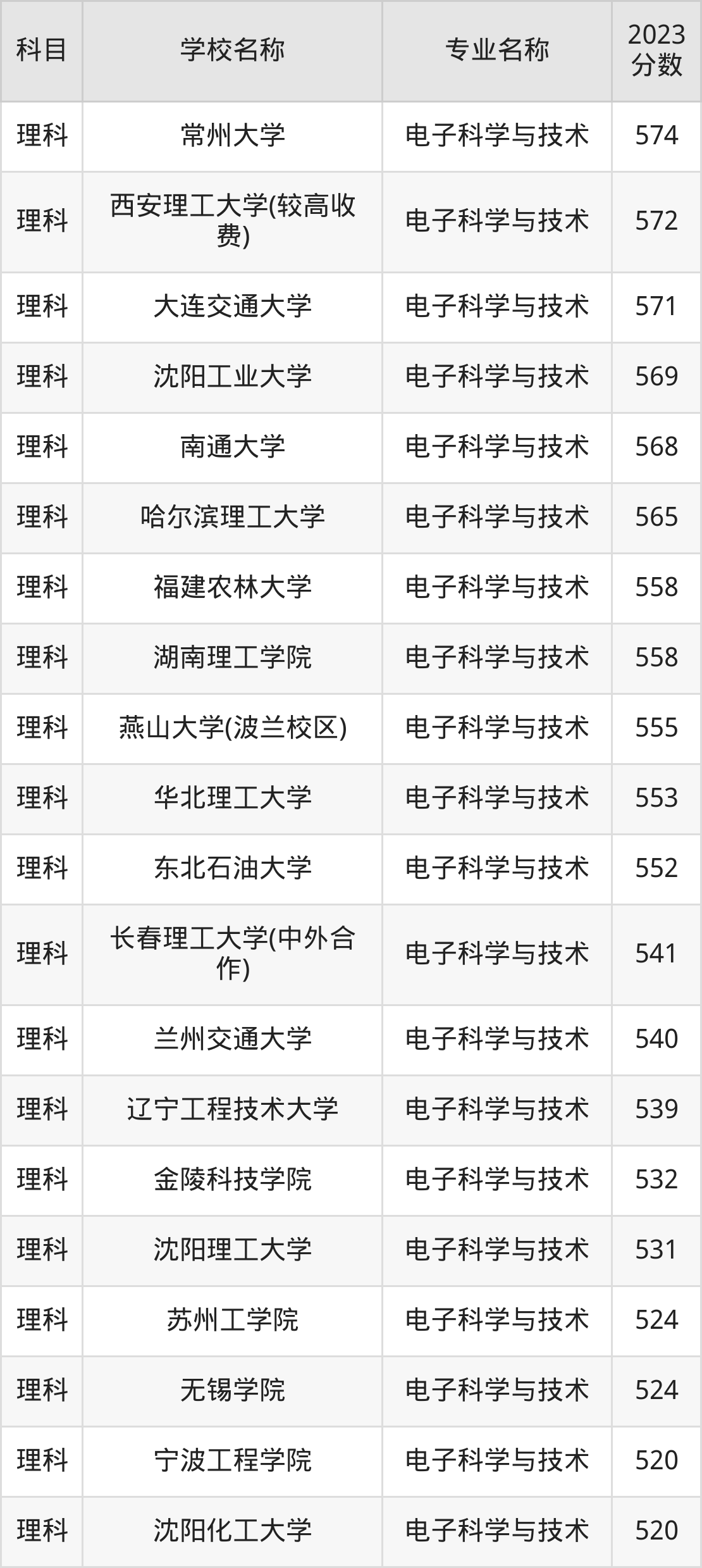 | 华北水利水电大学 | 电子科学与技术 (龙子湖校区) | 557 |