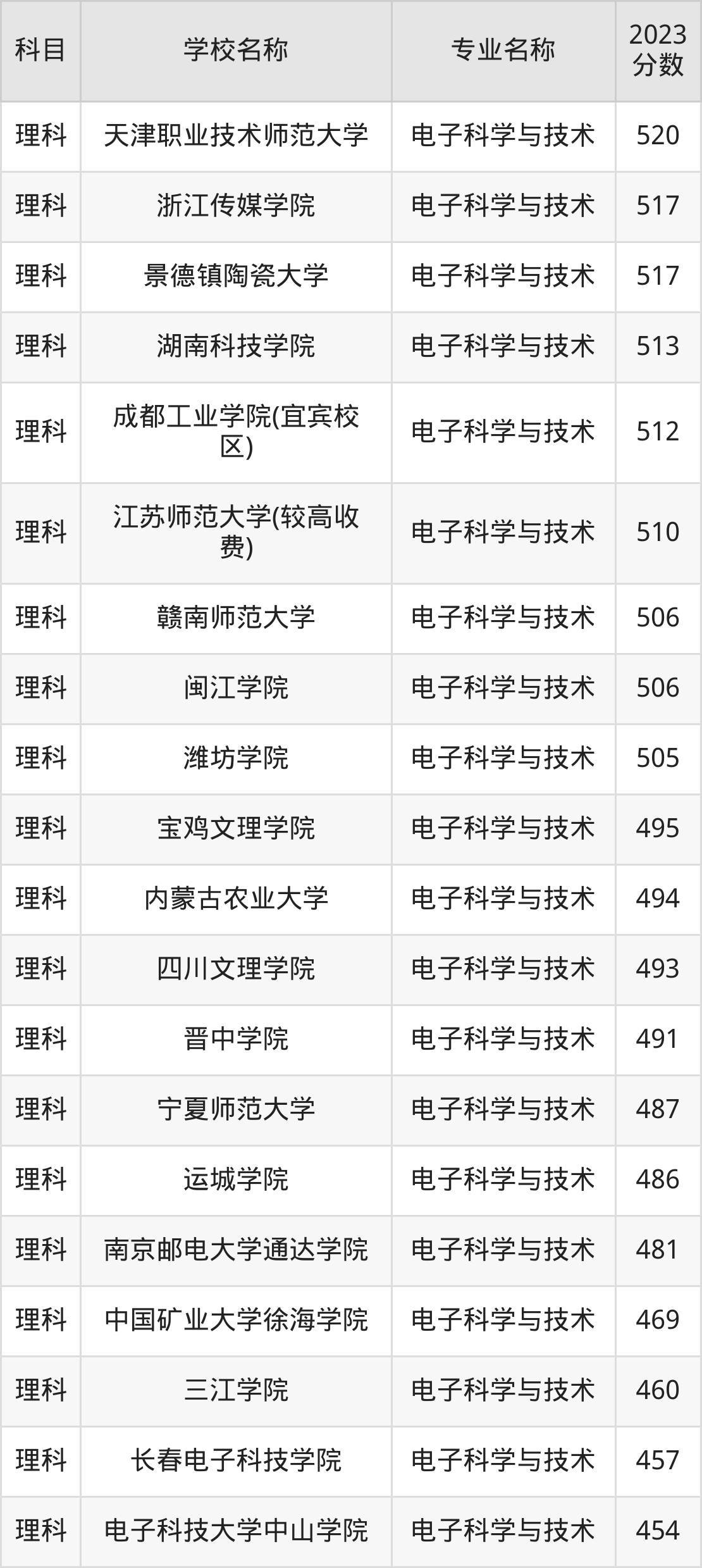 | 郑州科技学院 | 电子科学与技术 (校本部) | 456 |