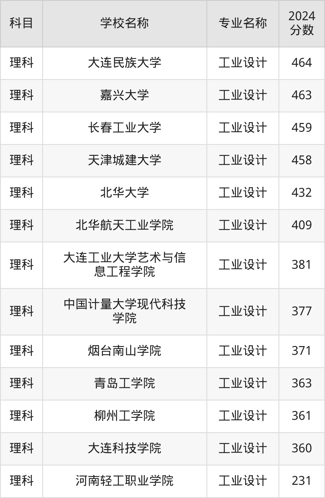 | 内蒙古科技大学 | 工业设计(办学 地点:校本部) | 420 |