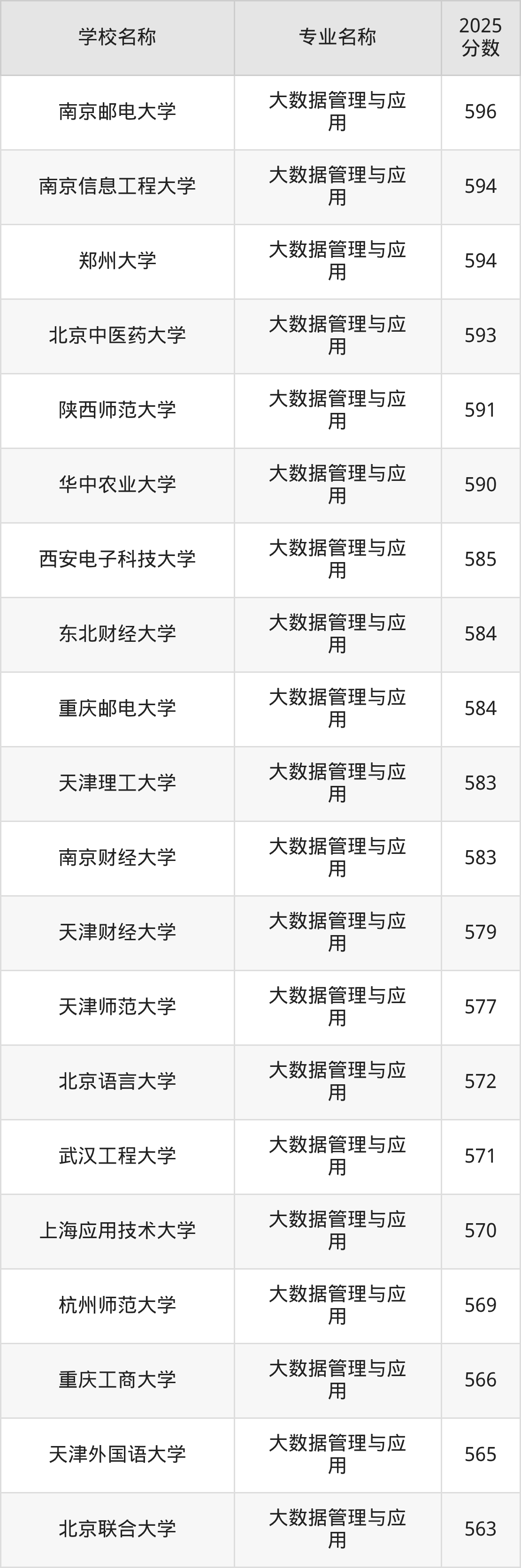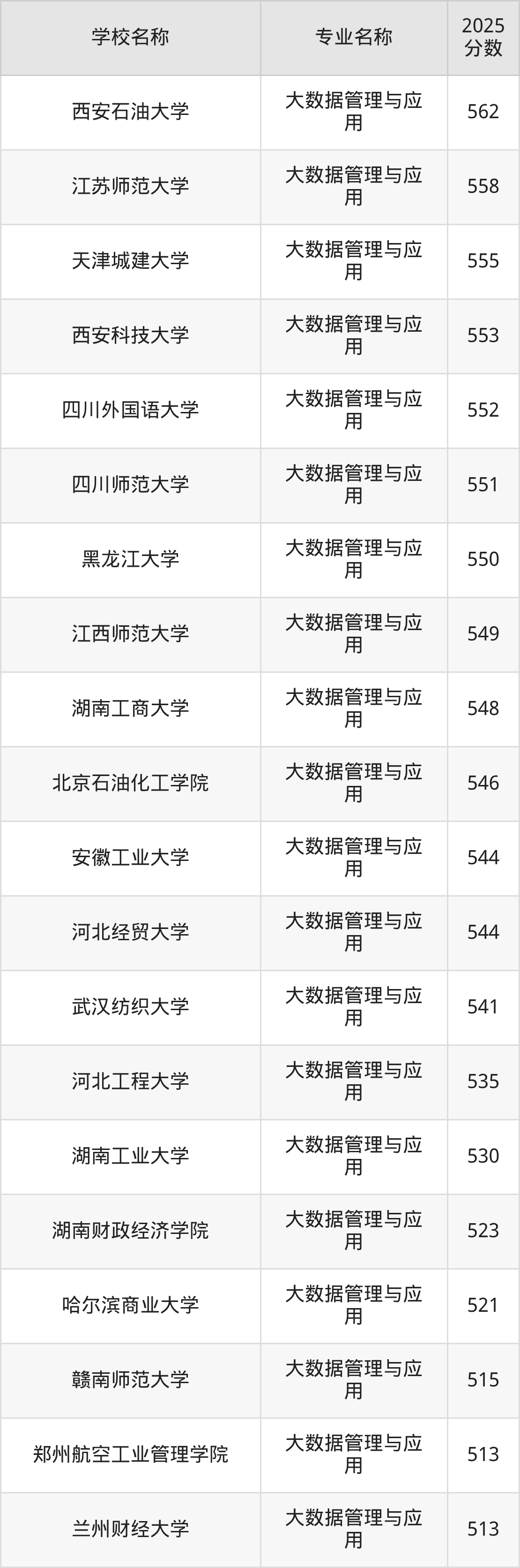 | 学校名称 | 专业名称 | 2025 分数 |
