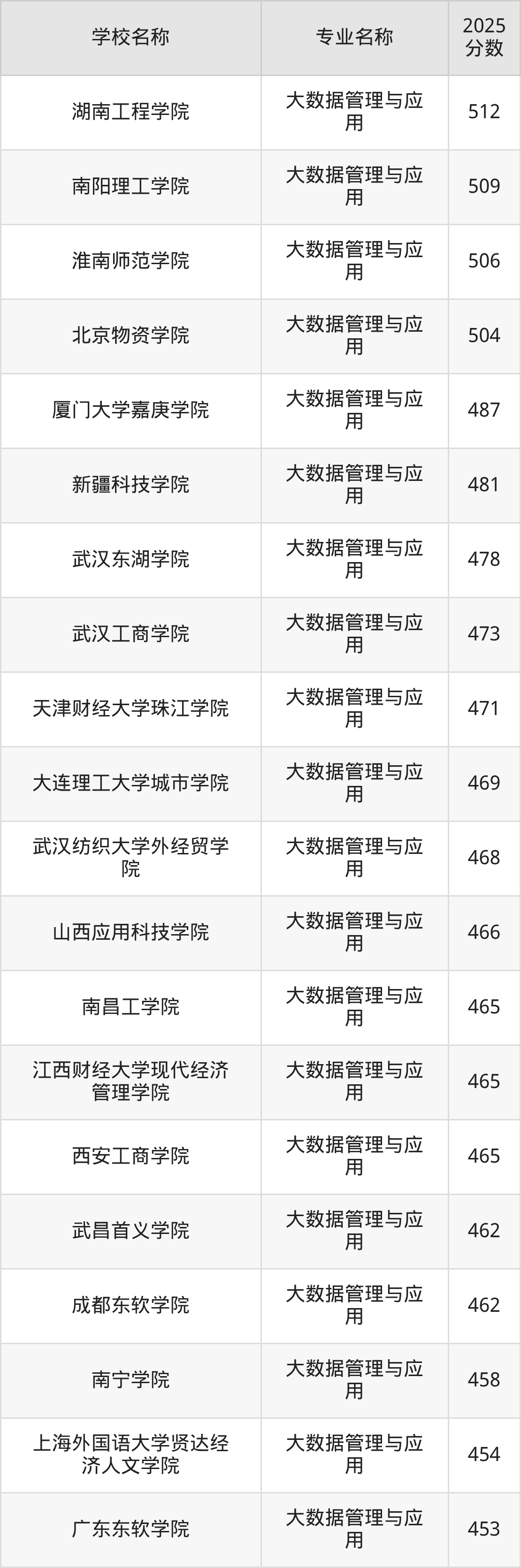 | 山东财经大学东方学院 | 大数据管理与应 用 | 468 |