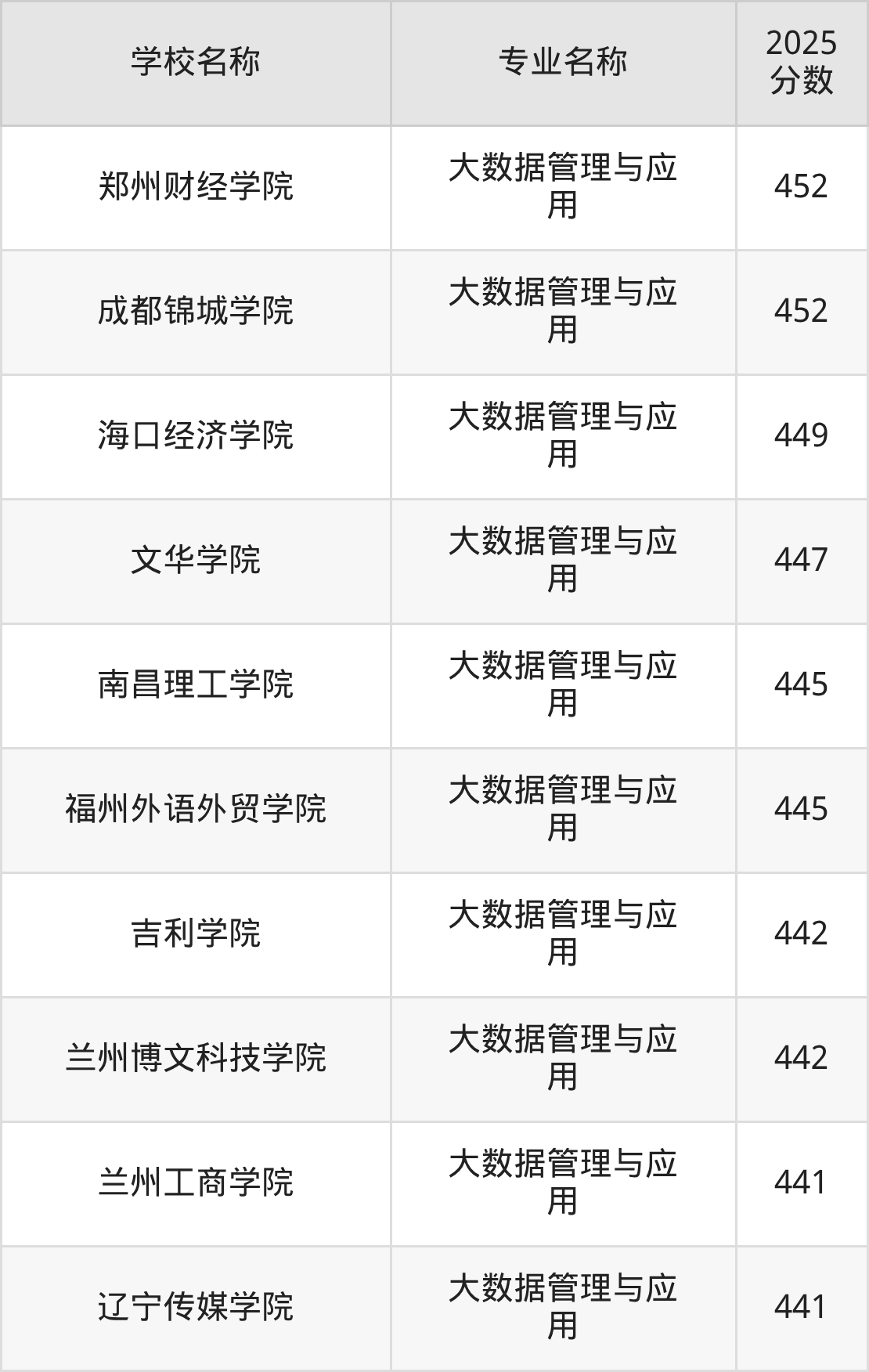 | 山东财经大学燕山学院 | 大数据管理与应 用 | 461 |
