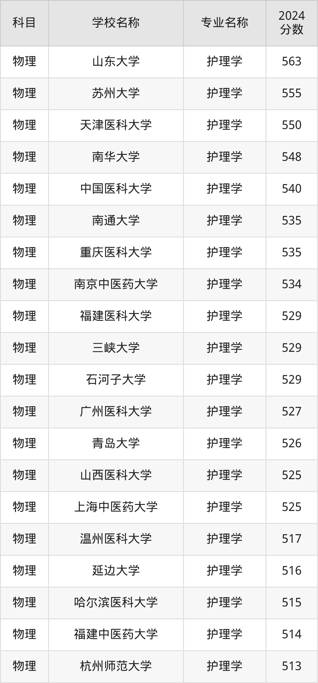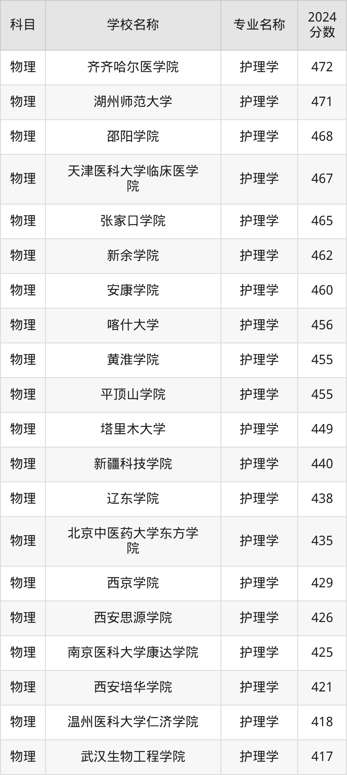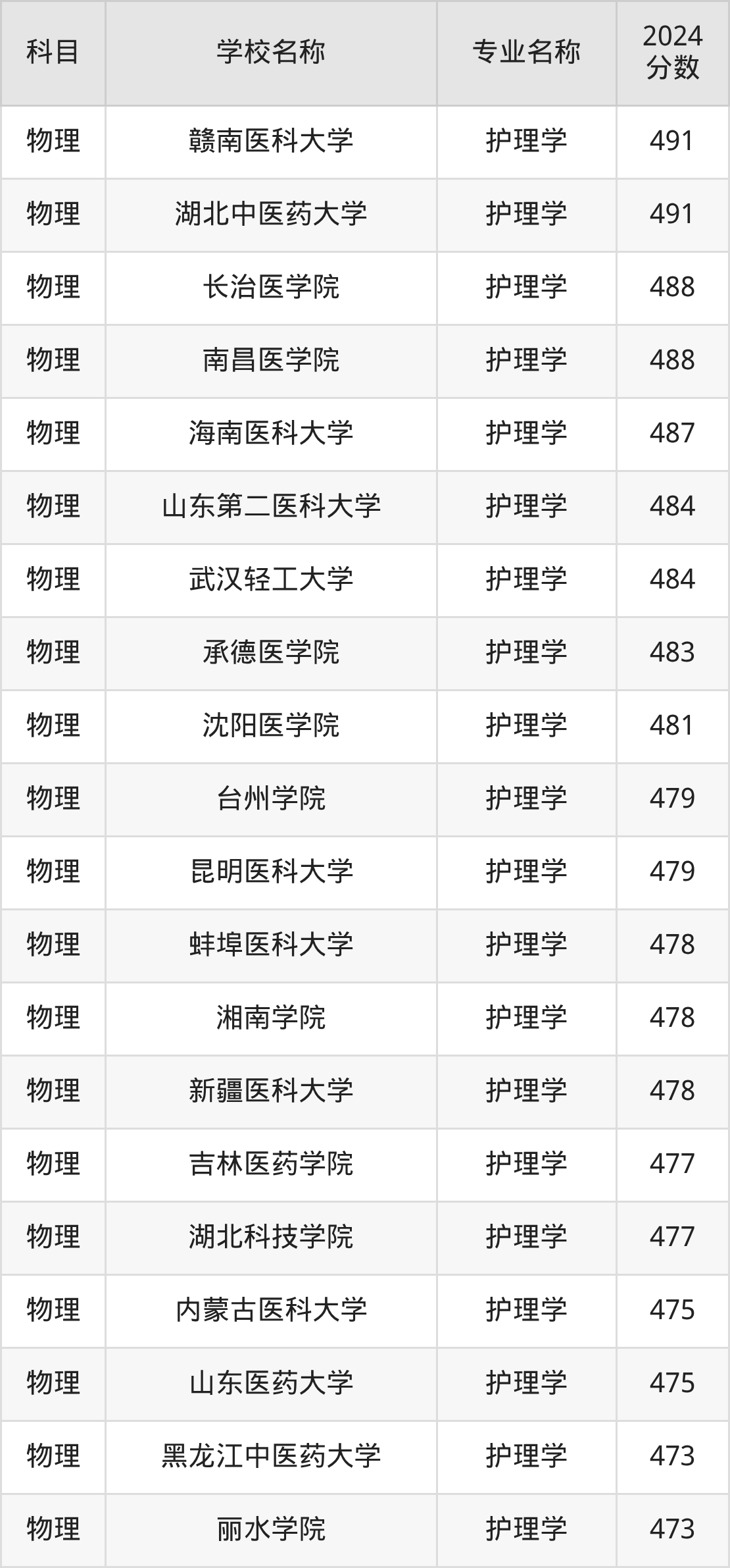 甘肃高考物理组:护理学专业的最低分是308分~553分