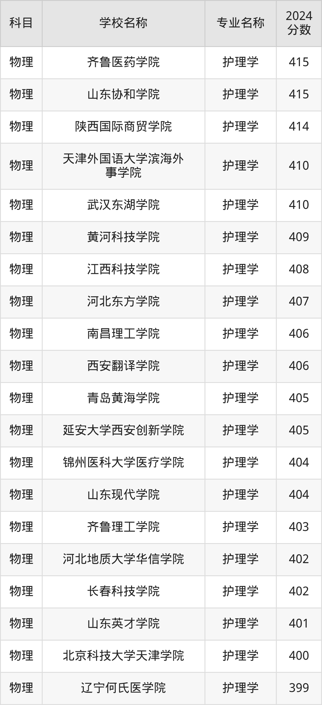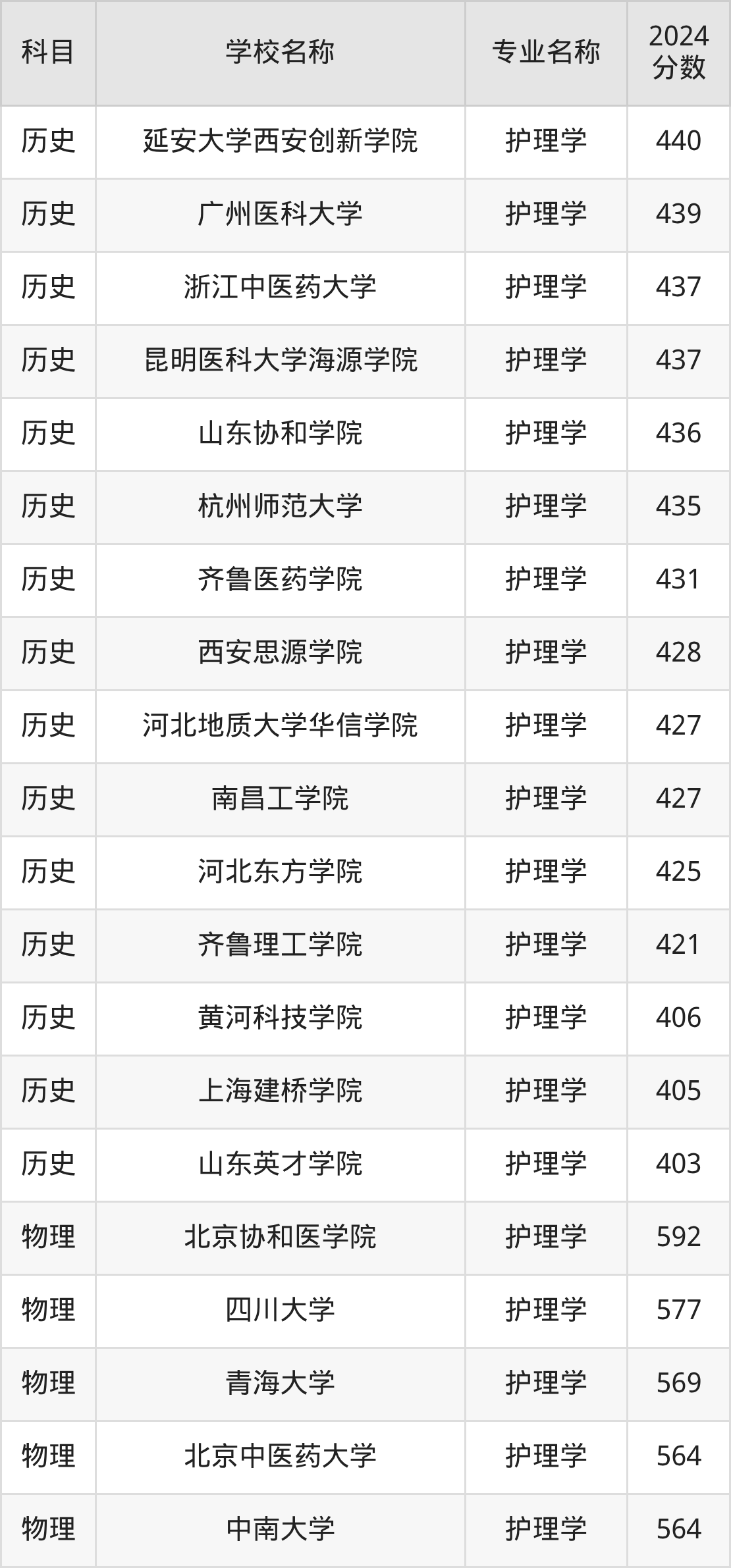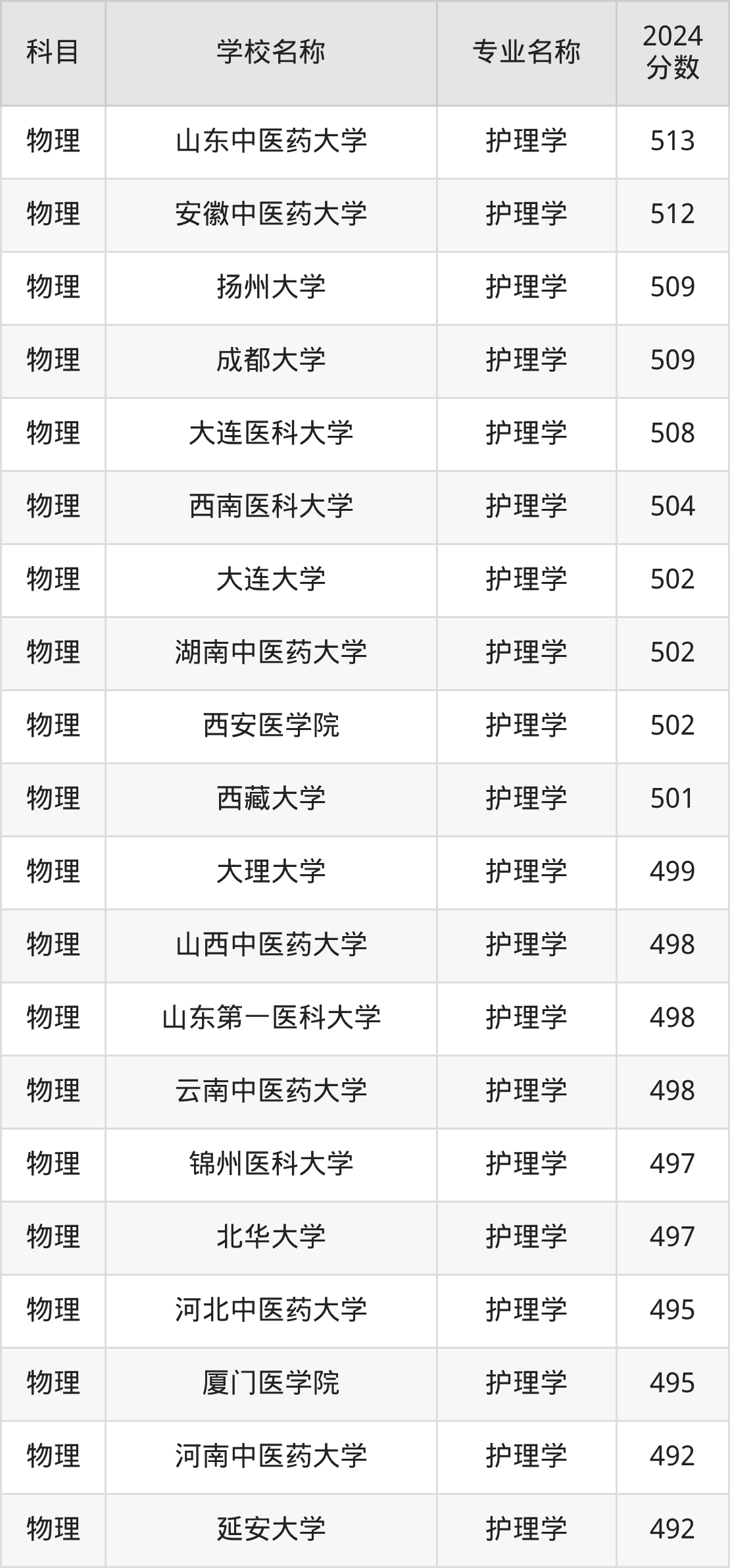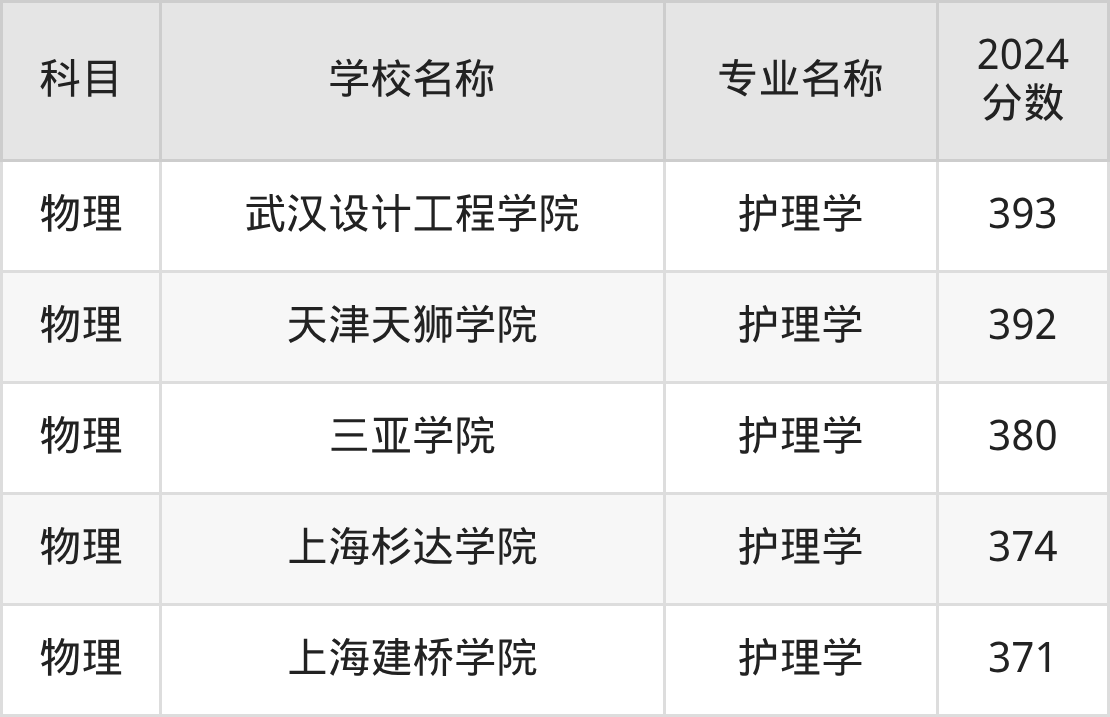 甘肃高考物理组:护理学专业的最低分是308分~553分