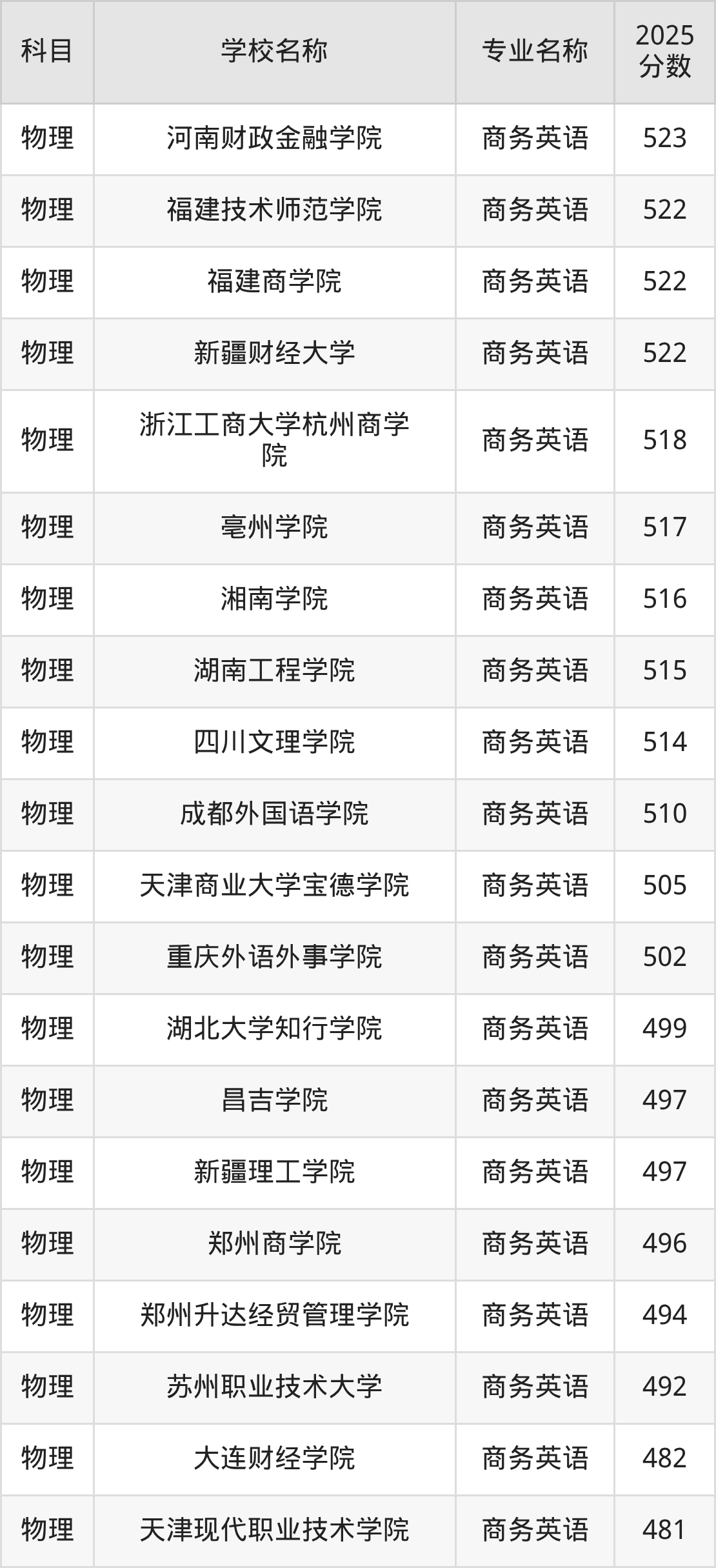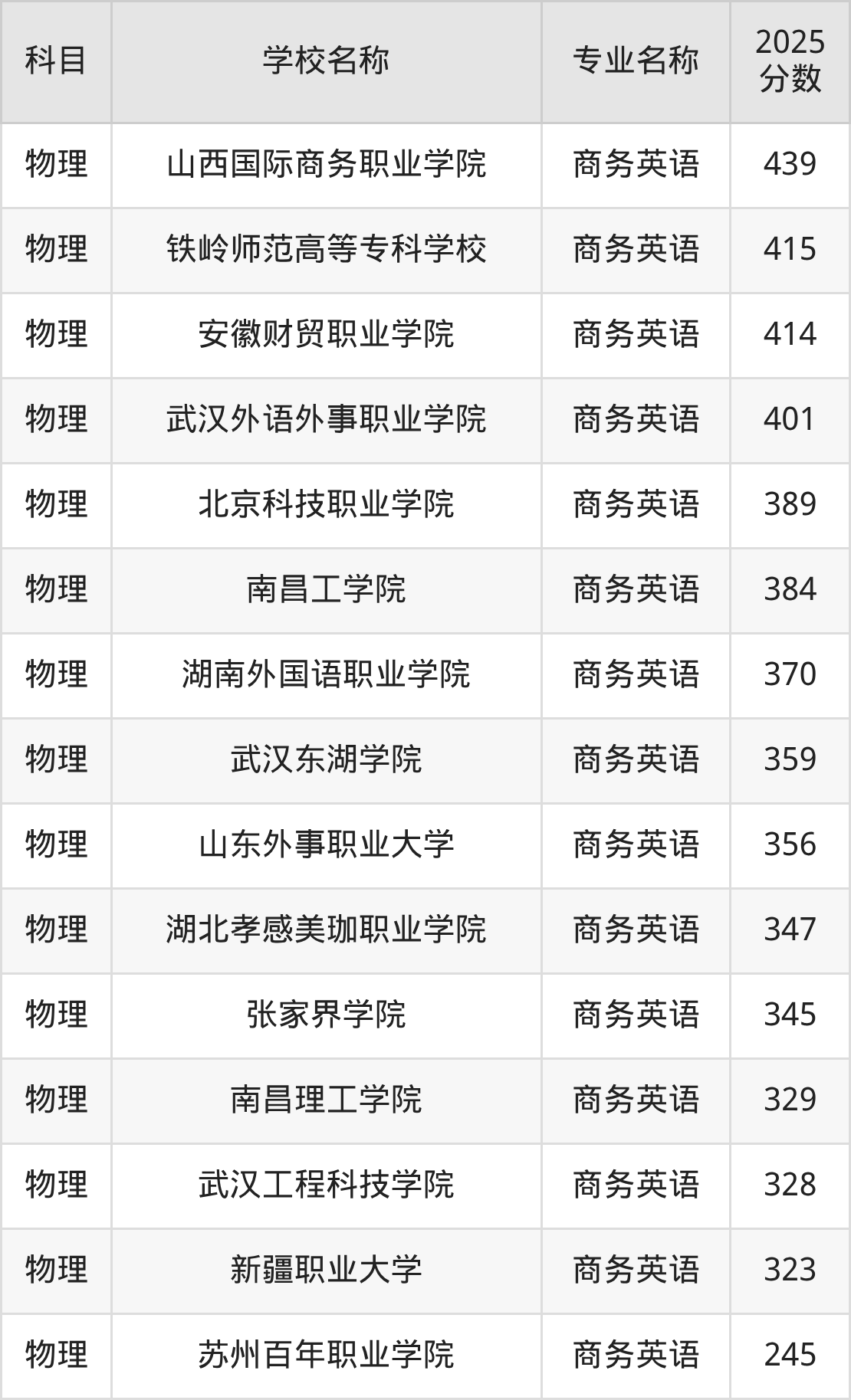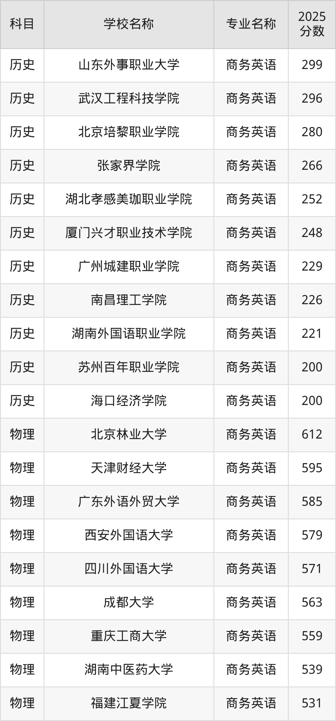 | 学校名称 | 专业名称 | 2025 分数 |