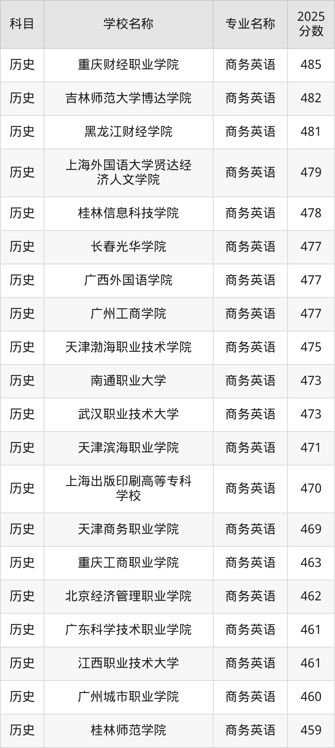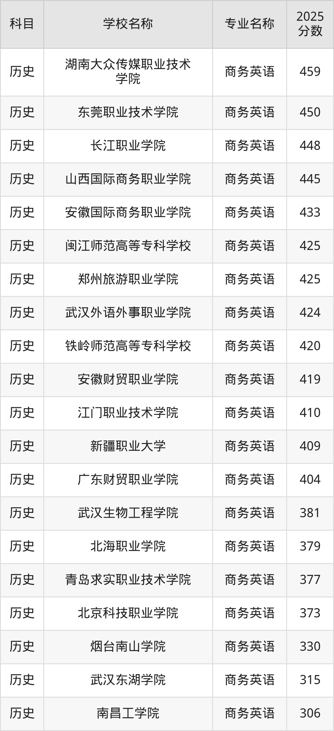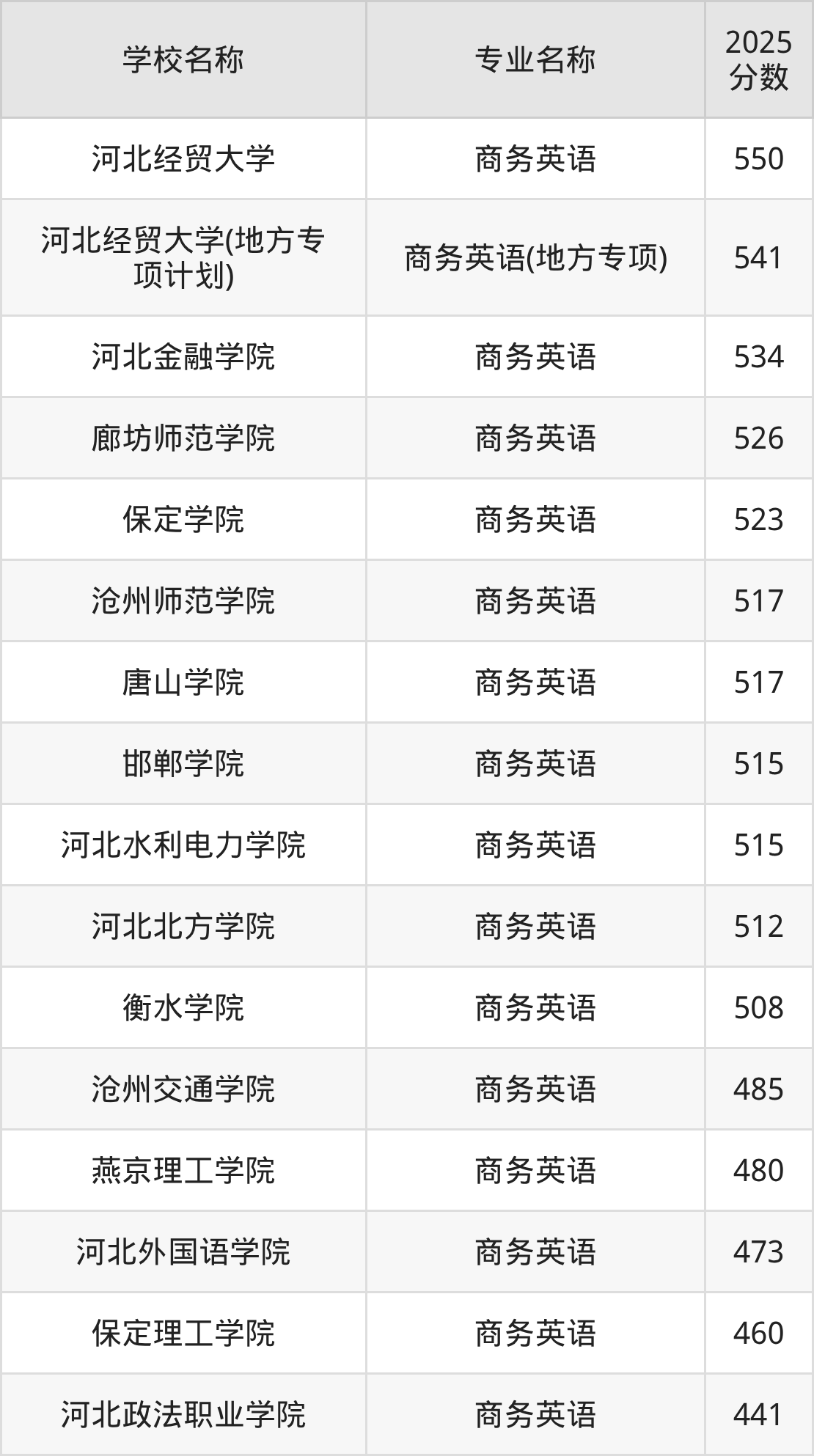 | 河北政法职业学院 | 商务英语 | 449 |