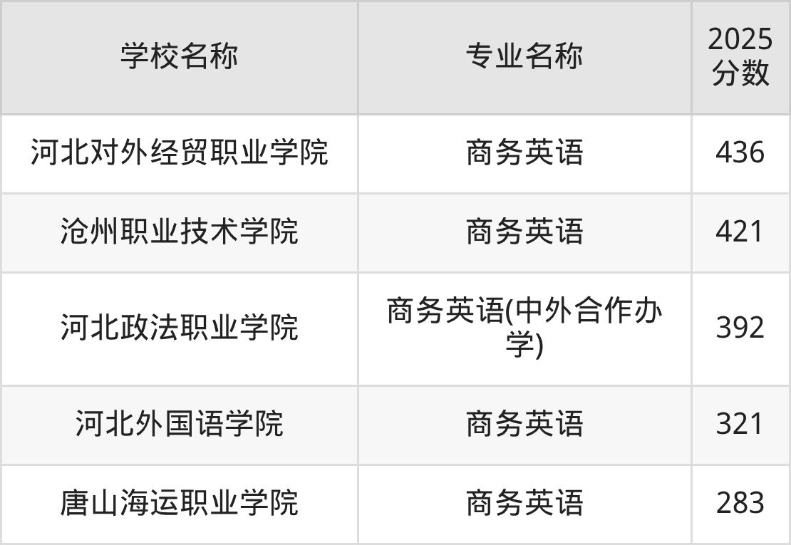 | 河北对外经贸职业学院 | 商务英语 | 436 |