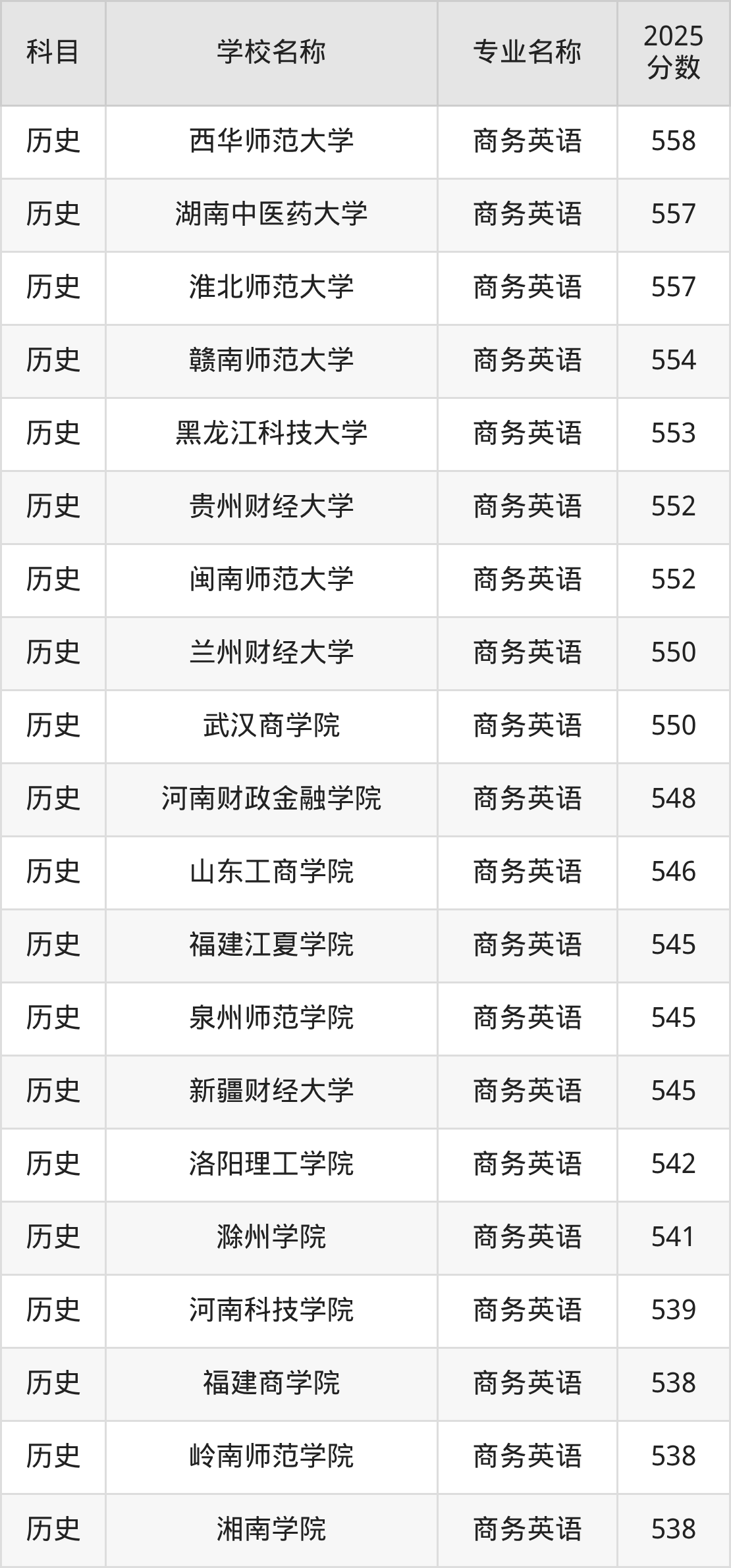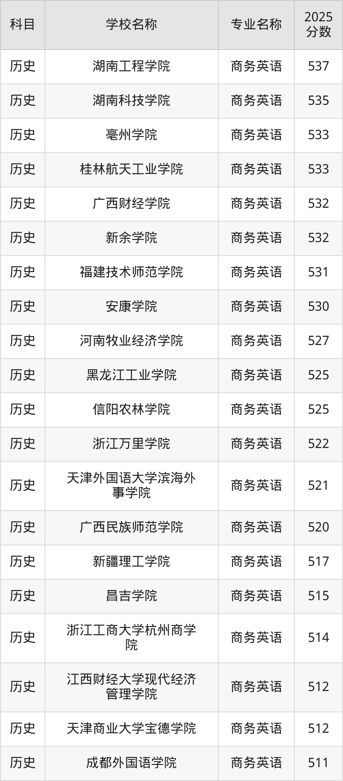 | 河北北方学院 | 商务英语 | 525 |