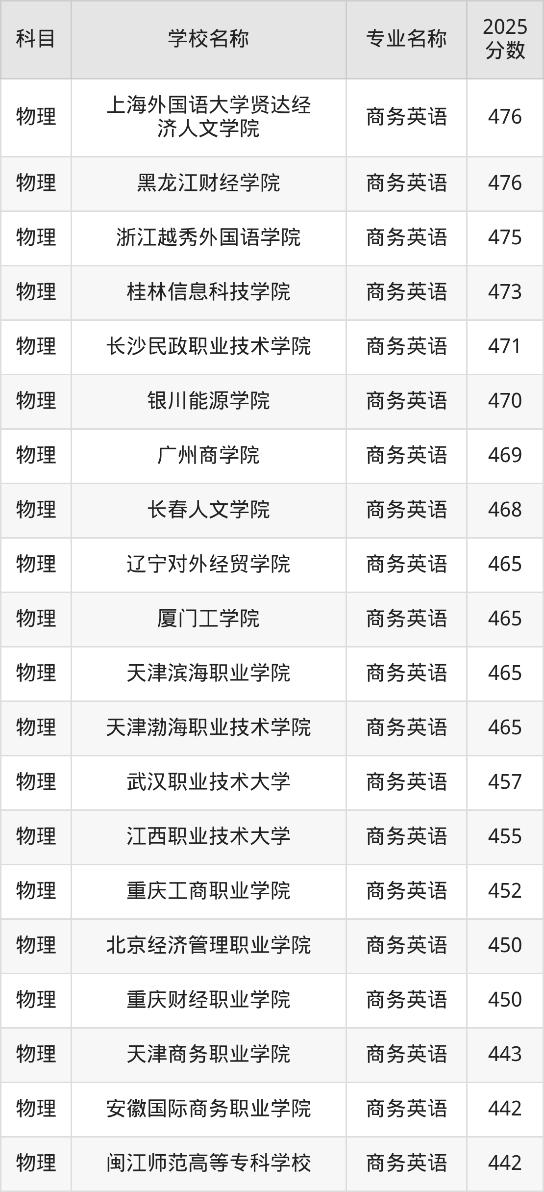 | 石家庄职业技术学院 | 商务英语 | 476 |