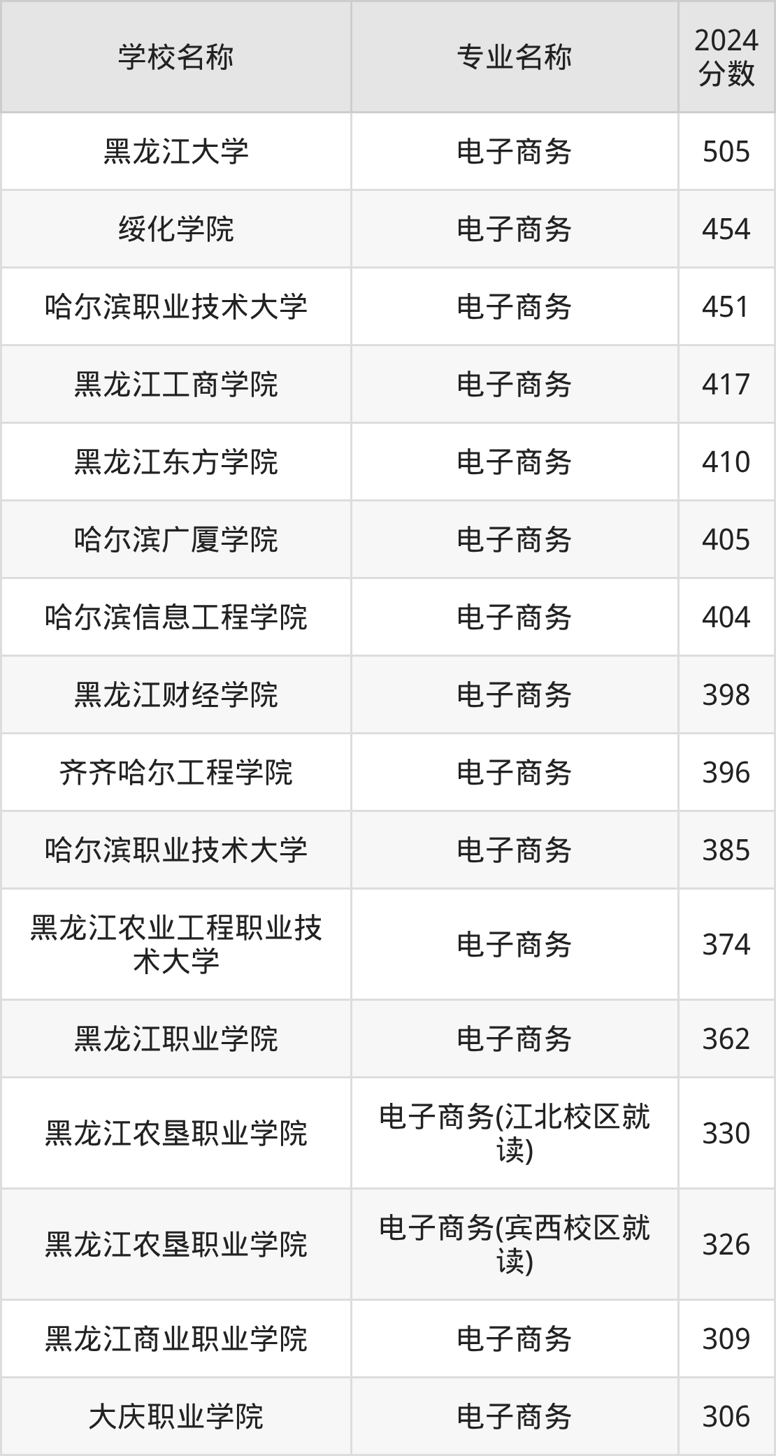 | 黑龙江工商学院 | 电子商务 | 362 |