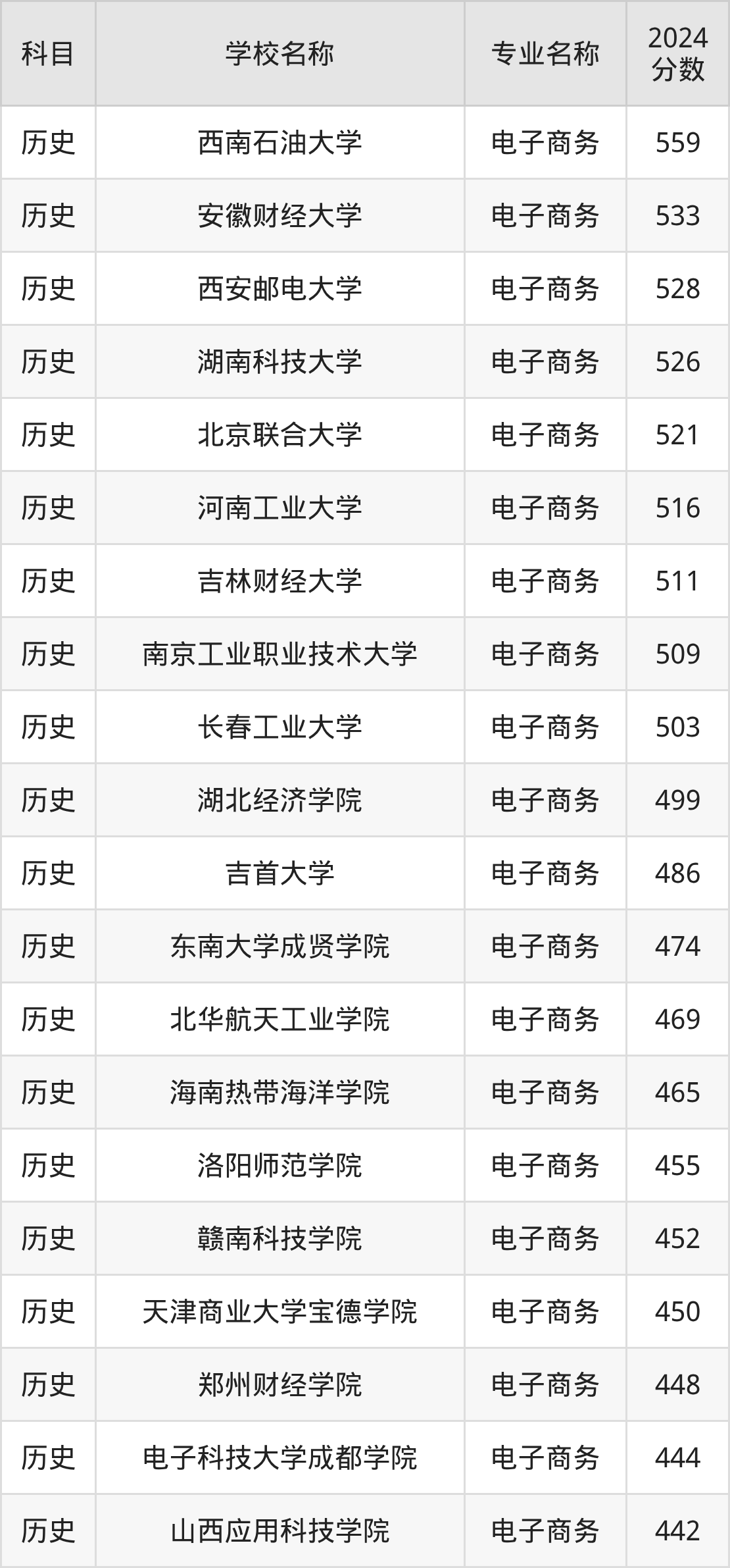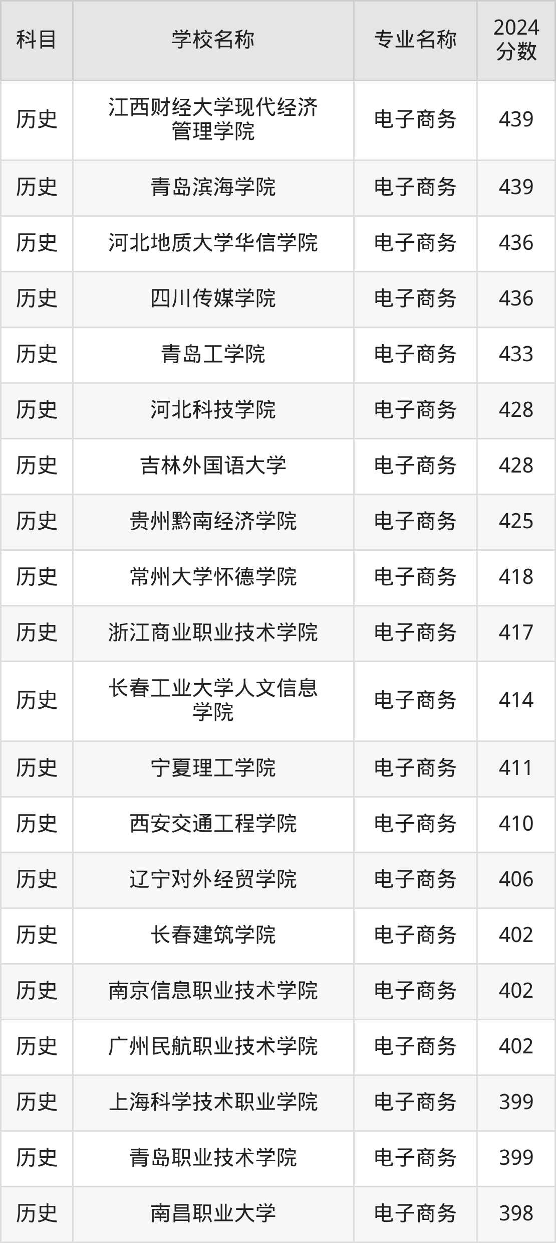 | 哈尔滨广厦学院 | 电子商务 | 379 |