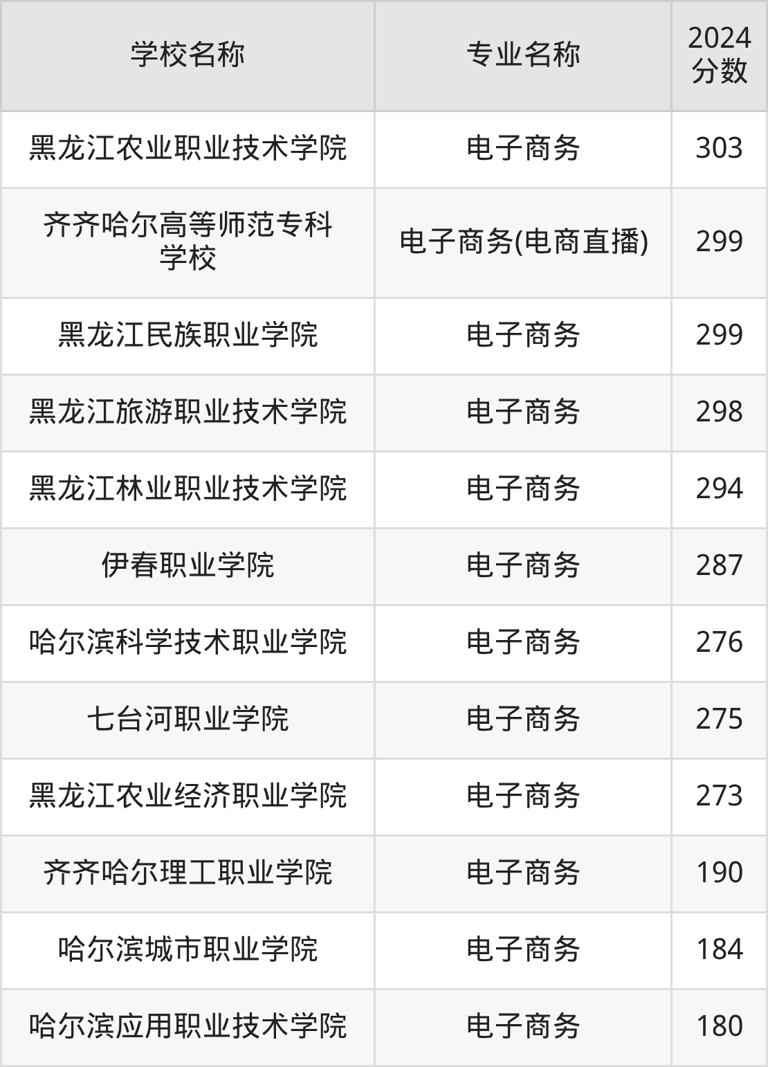 | 齐齐哈尔理工职业学院 | 电子商务 | 255 |
