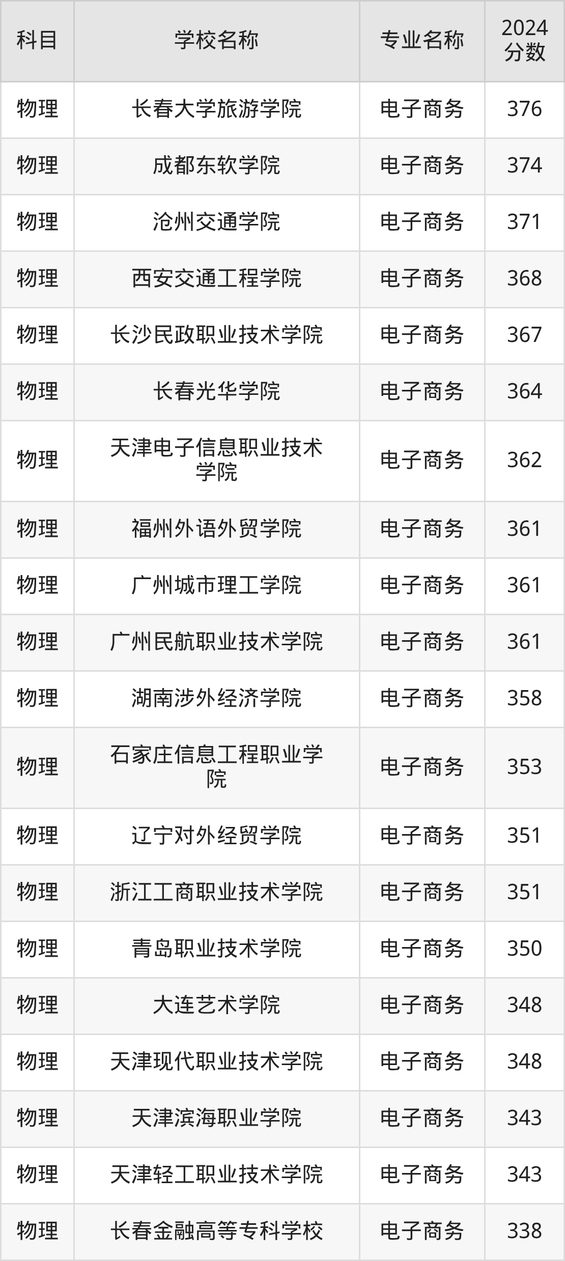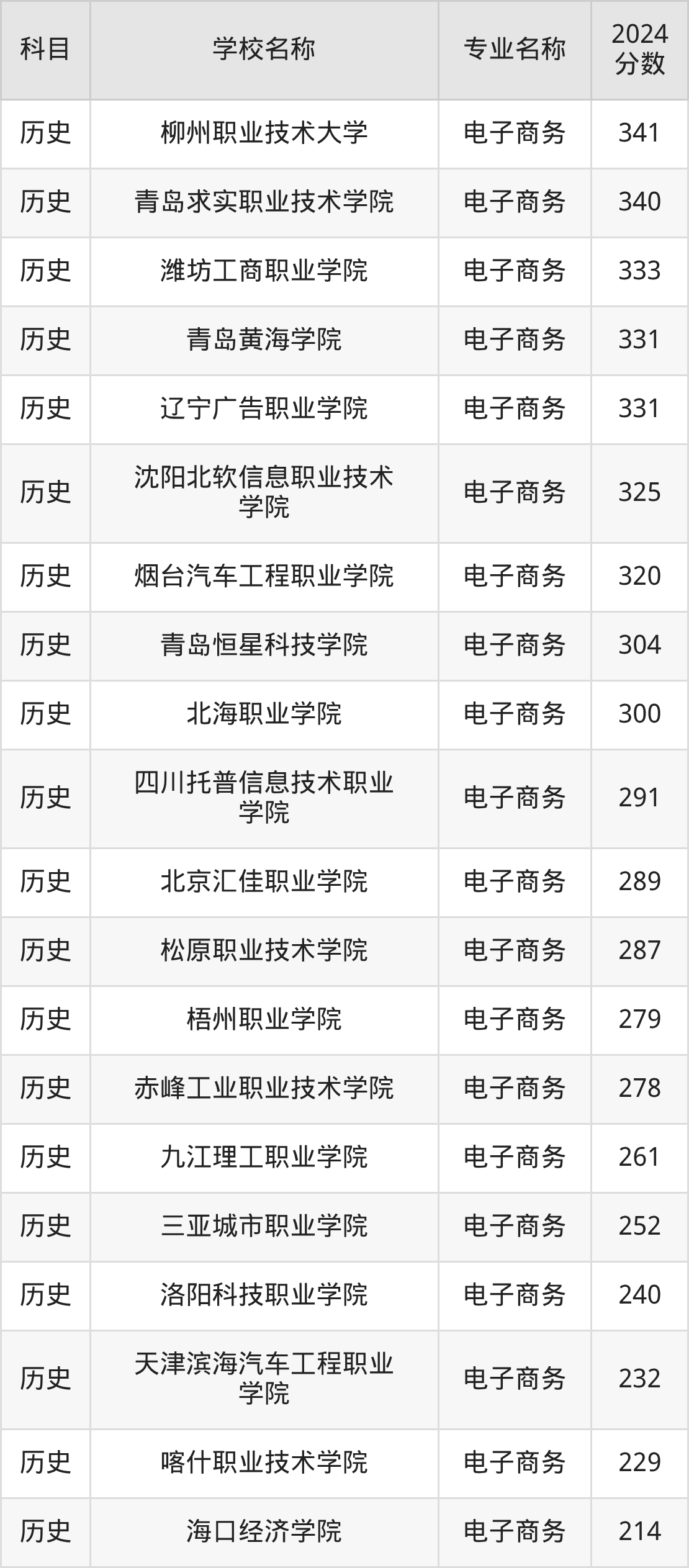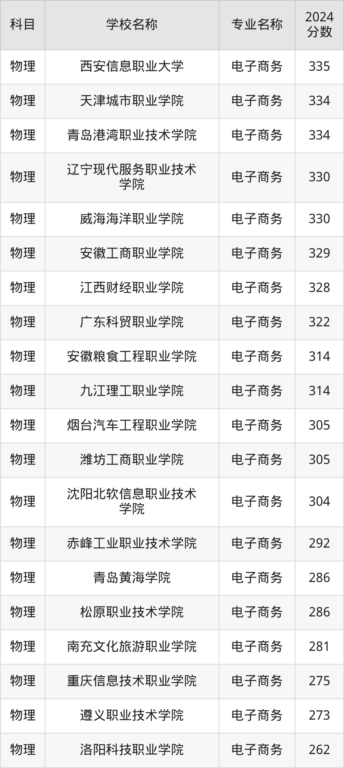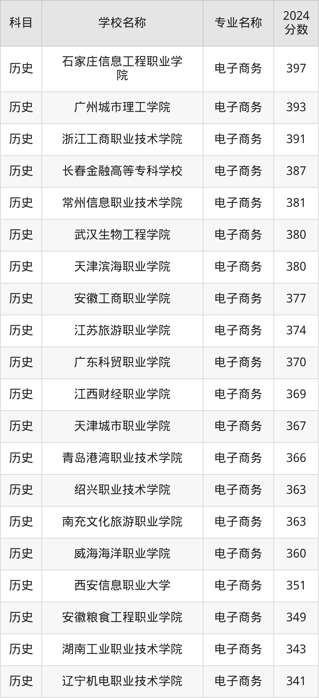 | 黑龙江职业学院 | 电子商务 | 335 |
