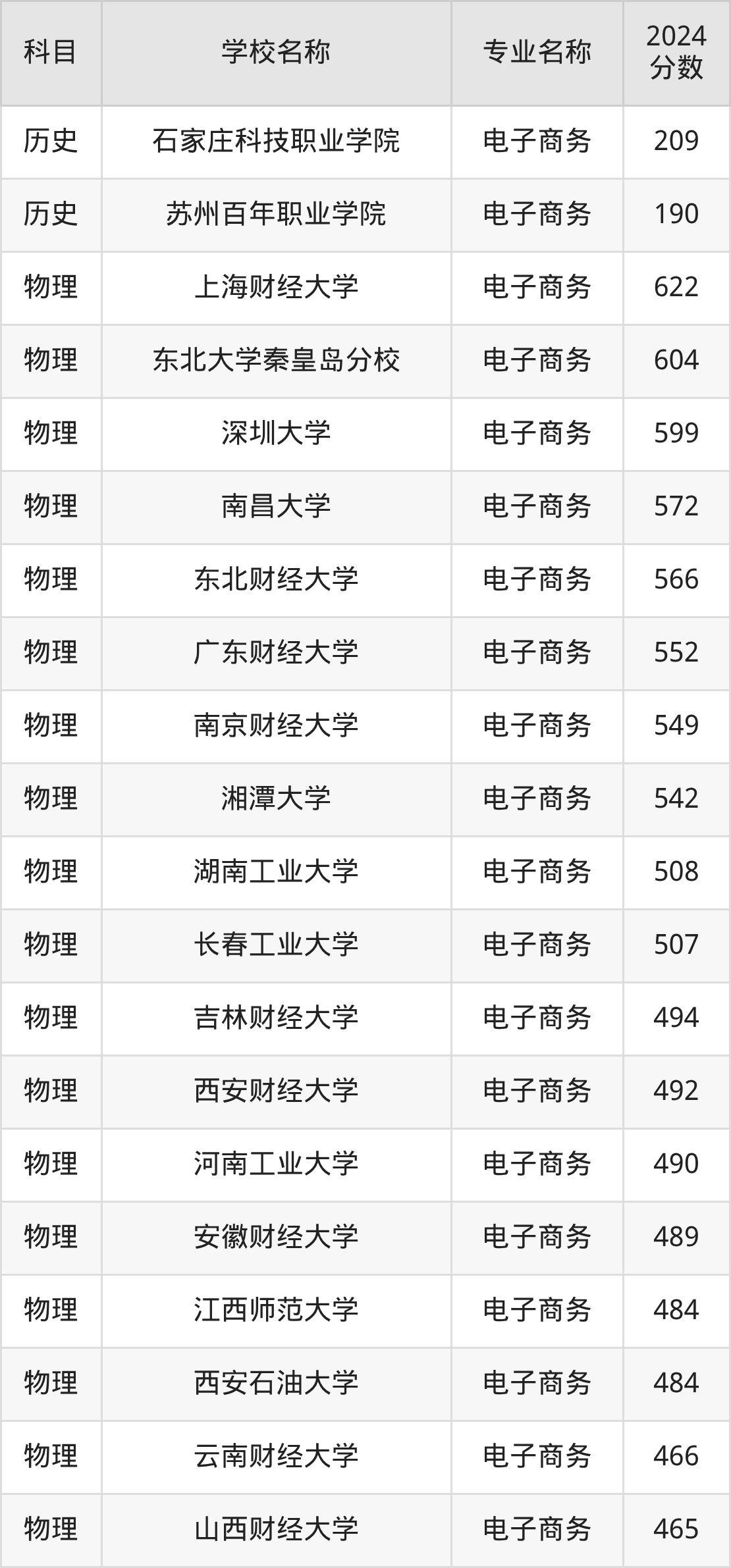 | 哈尔滨商业大学(少数 民族预科) | 电子商务(少数 民族预科班) | 402 |
