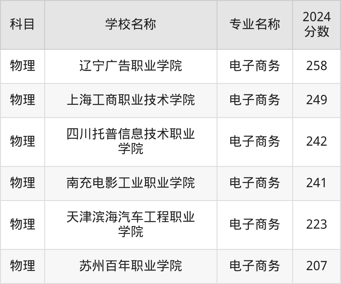 黑龙江高考物理组:电子商务专业的最低分是249分~477分