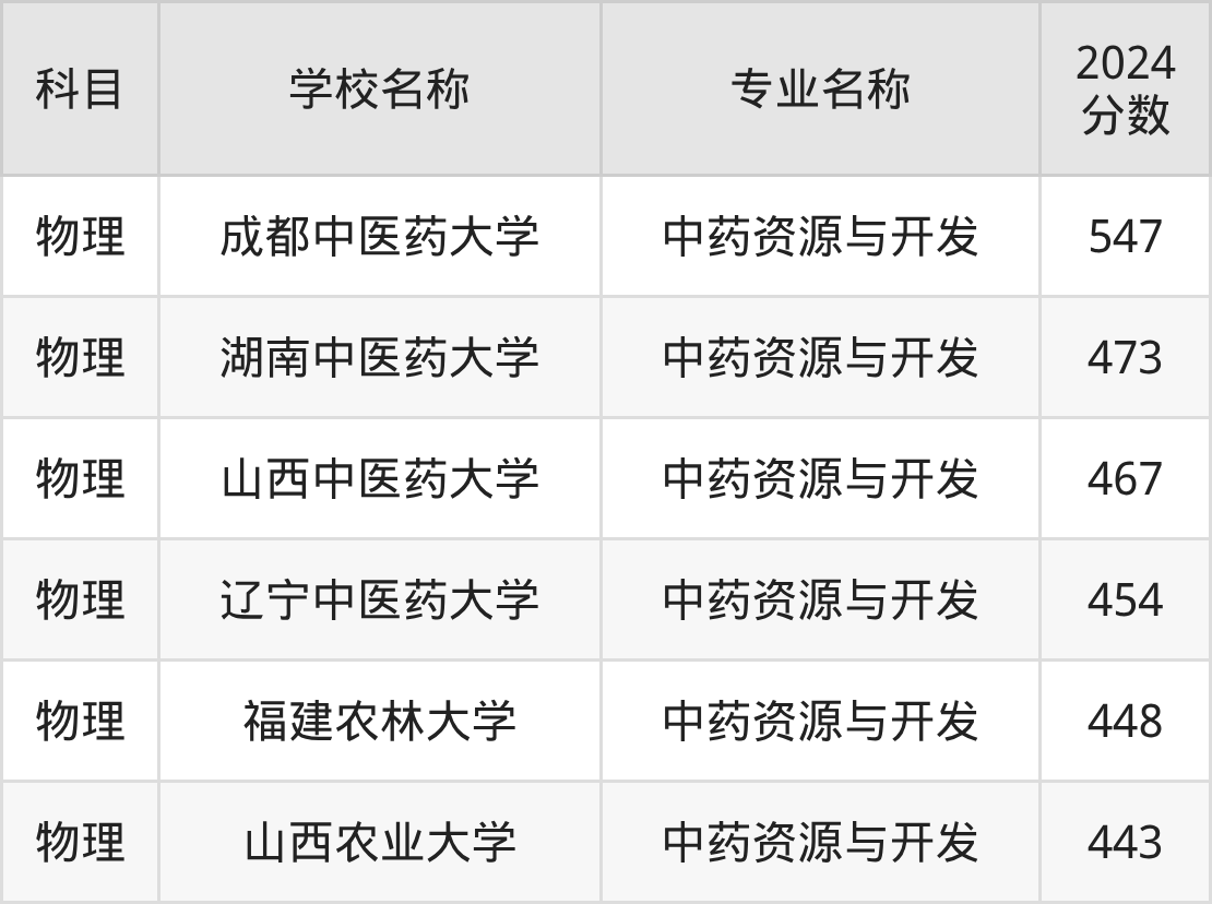 黑龙江高考物理组:中药资源与开发专业的最低分是439分~456分