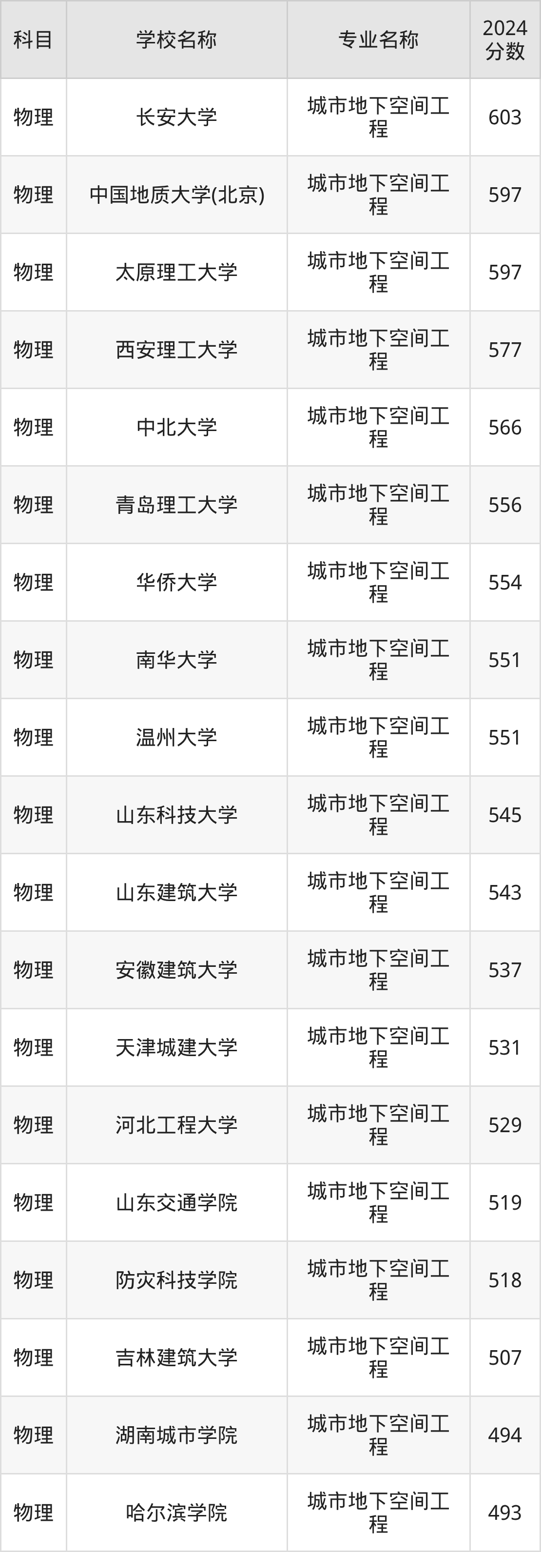 通过上文大家可以知晓,在江苏省内招城市地下空间工程专业的院校数量较少,所以下文将为2026届高考生继续展示:省外大学的城市地下空间工程专业2024年在江苏高考的录取情况,包含长安大学、中国地质大学(北京)、太原理工大学、西安理工大学、中北大学。